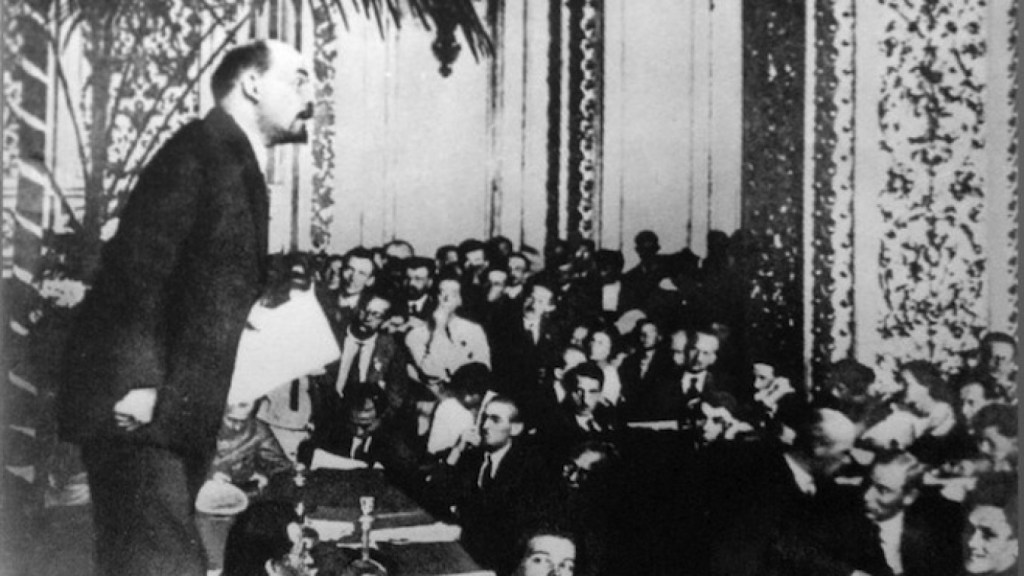 Η σοσιαλιστική επανάσταση του Οχτώβρη 1917 στη Ρωσία έσπασε την ιμπεριαλιστική αλυσίδα στον “πιο αδύναμο κρίκο της”, τόνισε ο Λένιν, ο οποίος χαραχτήρισε τη μεταβατική περίοδο από τον καπιταλισμό στο σοσιαλιασμό ως “εποχή πολέμων και επαναστάσεων”.