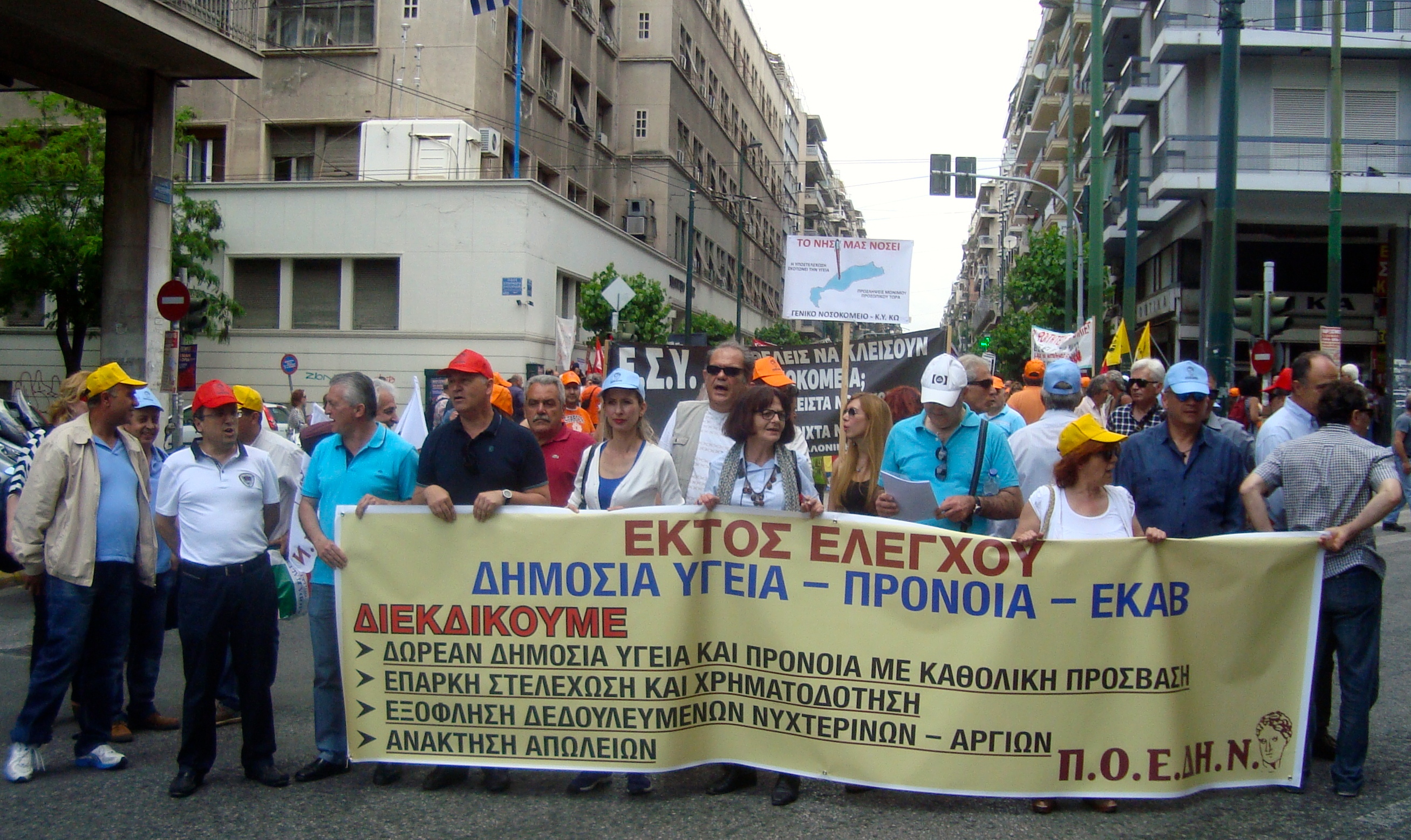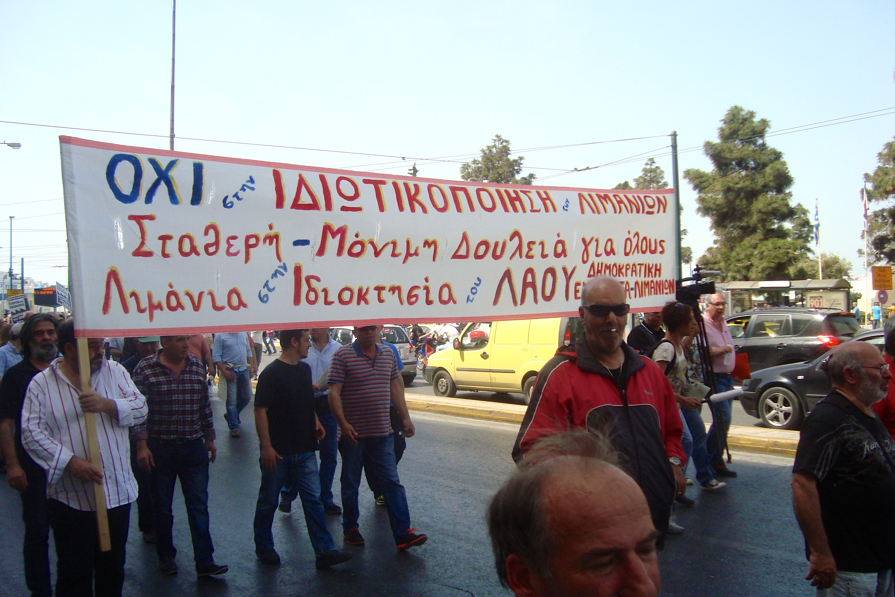 Από την απεργιακή πορεία (7 Μάη 2015) στο λιμάνι Πειραιά ενάντια στην ιδιωτικοποίηση. Φωτό ΕΑ.