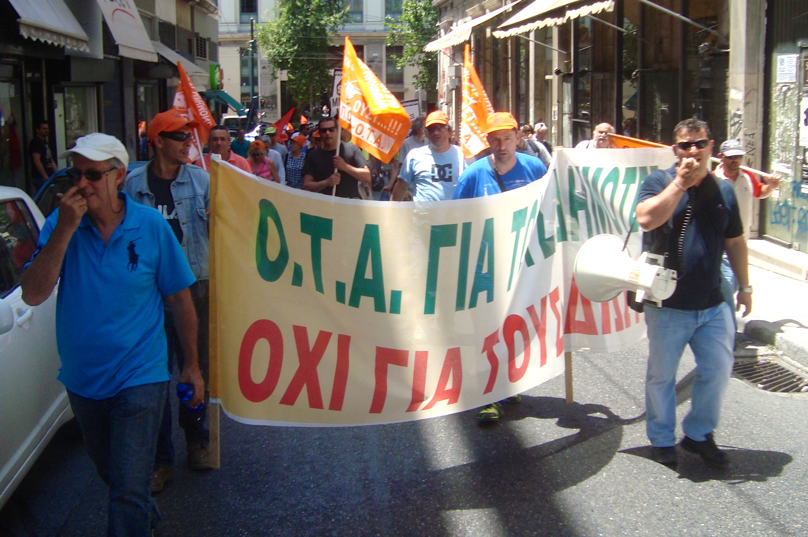 Στην Αθήνα η ΓΣΕΕ παράμενε μουγγή και άπραγη! Αλλά σήμερα Τετάρτη 1 Ιούλη αποφάσισε ότι “το ερώτημα του δημοψηφίσματος είναι ΨΕΥΔΕΠΙΓΡΑΦΟ και ΔΙΧΑΣΤΙΚΟ και ΑΠΑΙΤΟΥΜΕ ΕΔΩ ΚΑΙ ΤΩΡΑ ΤΗΝ ΑΠΟΣΥΡΣΗ ΤΟΥ!” ενώ τονίζει το “ΝΑΙ” για το δημοψήφισμα. Πλήρης υποταγή στις διαταγές της τρόϊκα και των ντόπιων αφεντικών. Οι εργαζόμενοι πρέπει να εκδιώξουν την προδοτική γραφειοκρατία από τη ΓΣΕΕ και να εγκαθιδρύσουν πανελλαδική Εργατική Συνέλευση.