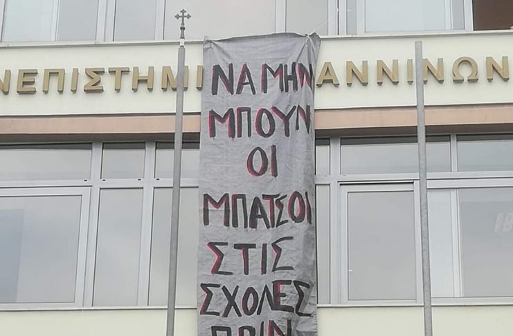 Φοιτητικό πανό στην κατάληψη της Πρυτανείας του Πανεπιστημίου Ιωαννίνων. Φωτό tweet