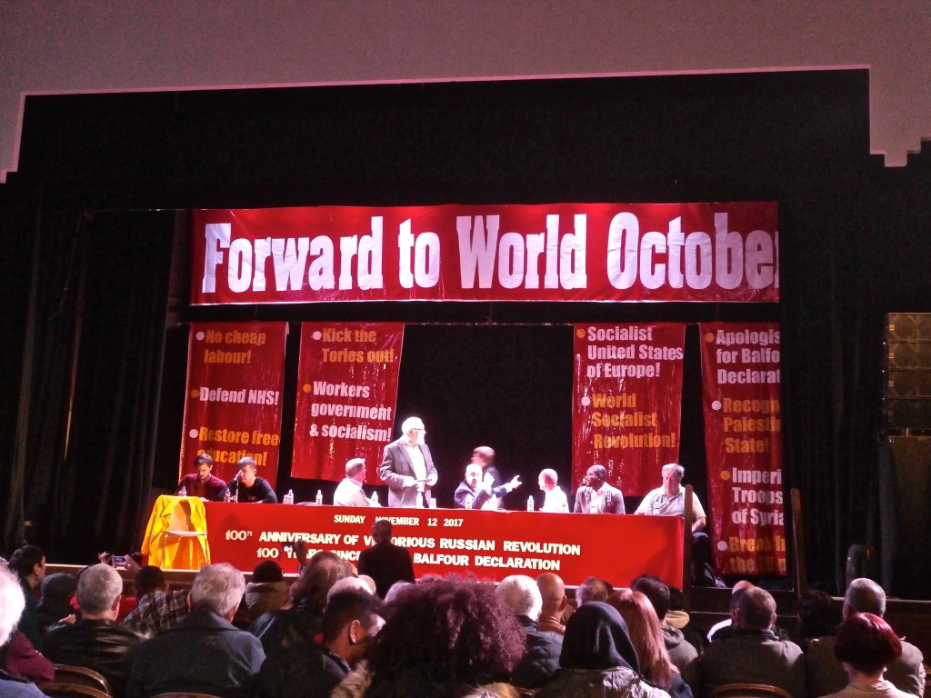 Από τη διεθνή μεγάλη συγκέντρωση στο Λονδίνο της Τέατρτης Διεθνούς (ΔΕΤΔ) για τα 100 χρόνια από την Οχτωβριανή Επανάσταση. Φωτό Ε.Α.