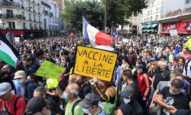 Εκατοντάδες χιλιάδες διαδήλωσαν στη Γαλλία και τα δυο Σάββατα 17 και 24 Ιούλη. Πρέπει να υπογραμμιστεί ότι αυτές οι μαζικές εργατικές διαδηλώσεις δεν έχουν καμιά σχέση με τις μικρές πορείες αντι-εμβολιαστικών ρατσιστικών και φασιστικών κομμάτων, όπως του κόμματος των Πατριωτών (αποσχίστηκε από την Εθνική Συσπείρωση – πρώην Εθνικό Μέτωπο – της Μ. Λεπέν).