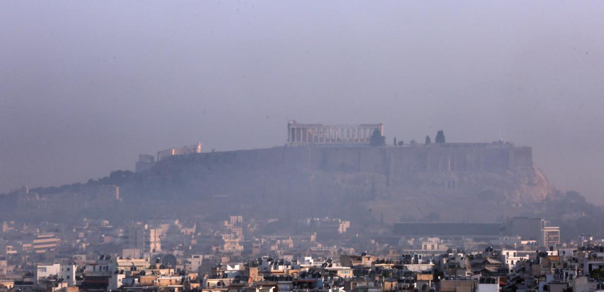 Άποψη της Ακρόπολης μέσα στο καρκινογόνο νέφος που κάλυψε το Λεκανοπέδιο από τις πυρκαγιές 15 χιλ. από το κέντρο της Αθήνας. Φωτό Ορέστης Παναγιώτου