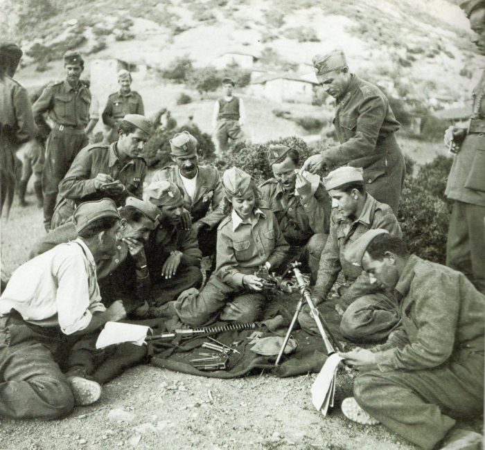 Ο Άρης Βελουχιώτης (στο κέντρο με γενειάδα) μιλά σε στρατιώτες του ΕΛΑΣ. (Φωτό Αρχείο Υπουργείου Ψηφιακής Πολιτικής, Τηλεπικοινωνιών και Πληροφορίας Ρωσίας)