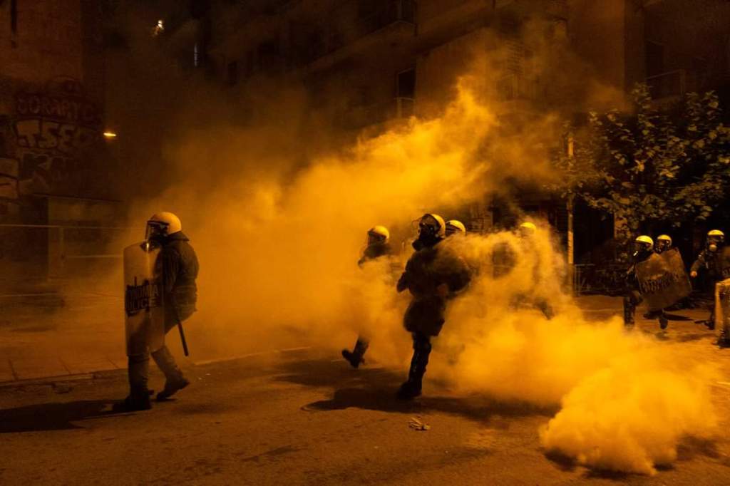 Έφοδος ΜΑΤ με χημικά ενάντια σε νεαρούς στα Εξάρχεια χτες Δευτέρα βράδυ. Φωτό Μάρις Λώλος