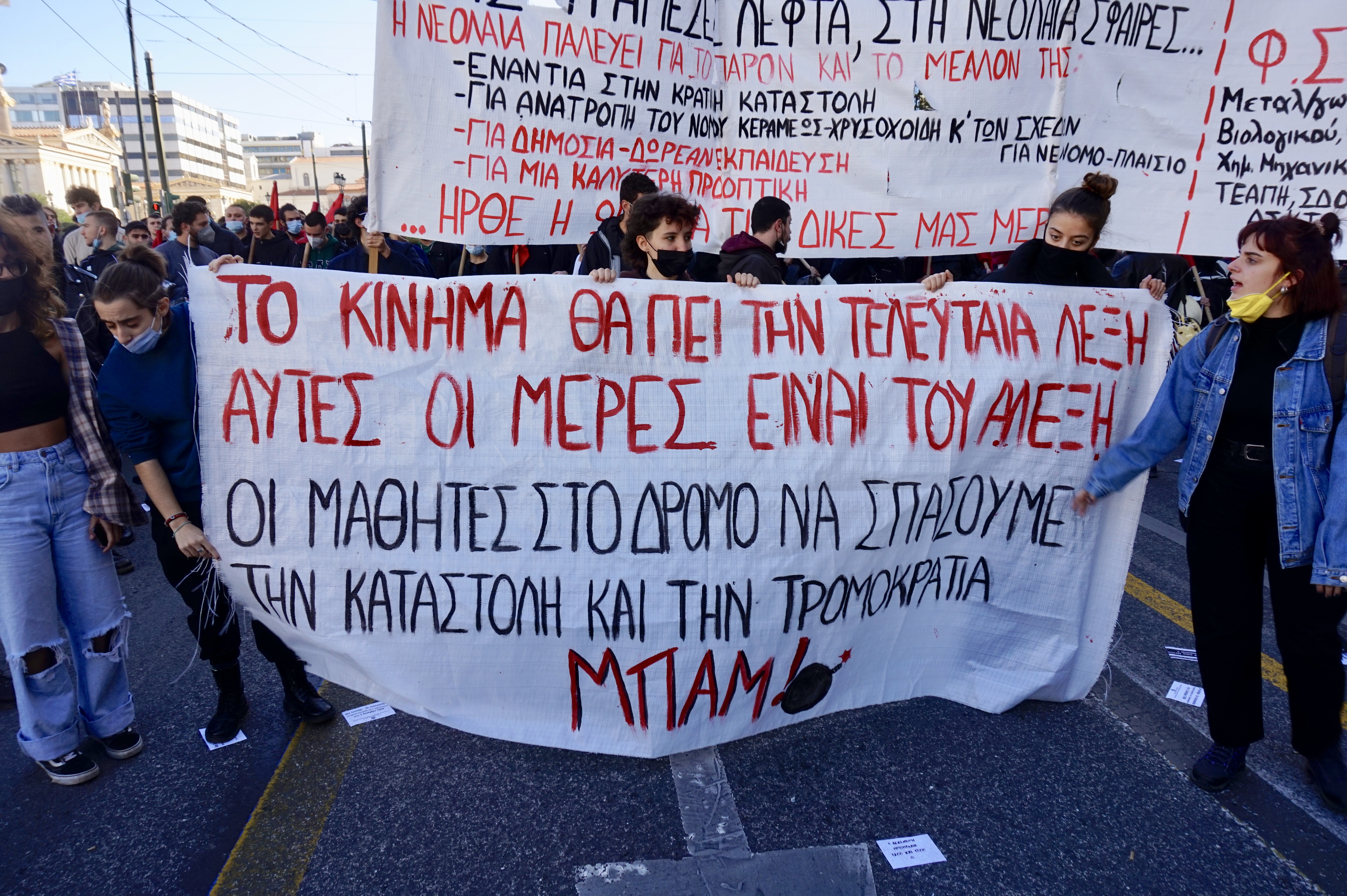 Από την πορεία μαθητών και φοιτητών χτες το μεσημέρι στην Αθήνα. Φωτό Ε.Α