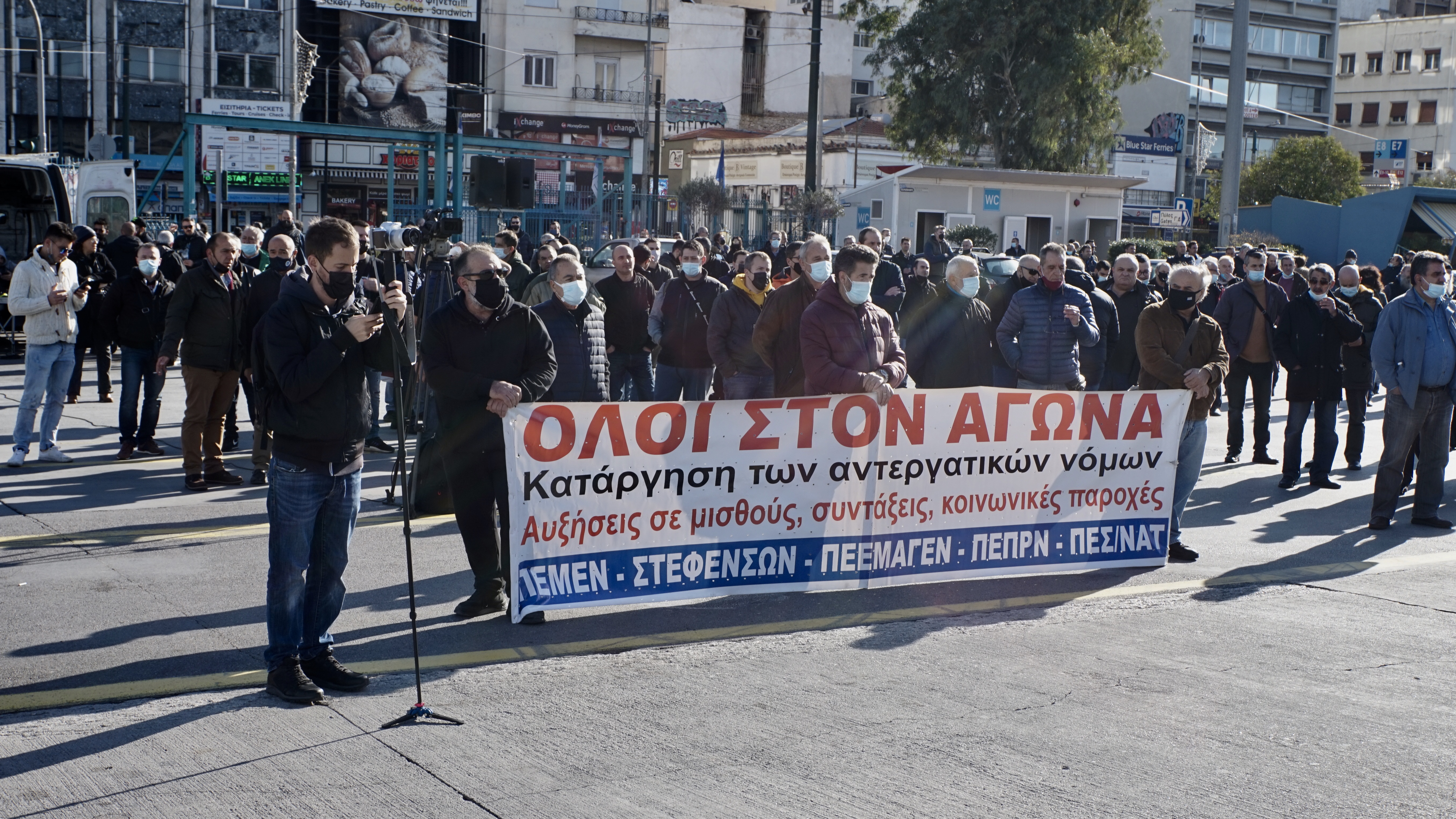 Από την απεργιακή κινητοποίηση των ναυτεργατών στο λιμάνι Πειραιά, 13/12/2021. (Φωτό Ε.Α.)