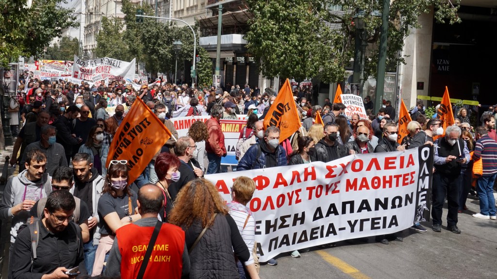 Στην Ελλάδα οι εργάτες στη ΛΑΡΚΟ, στα Λιπάσματα Καβάλας, στην Ετζίαν Όϊλ Καβάλας, στη Μαλαματίνα Θεσσαλονίκης, στην ΚΟΣΚΟ του Πειραιά, οι νοσοκομειακοί, οι εκπαιδευτικοί, οι εργαζόμενοι στον τουρισμό και στις διανομές, οι ναυτεργάτες έδωσαν και δίνουν μεγάλες μάχες ενάντια στην ακρίβεια και την ανεργία τής χούντας Μητσοτάκη που θέλει να ιδιωτικοποιήσει τα πάντα, και να διαλύσει δημόσια υγεία, παιδεία και πρόνοια.