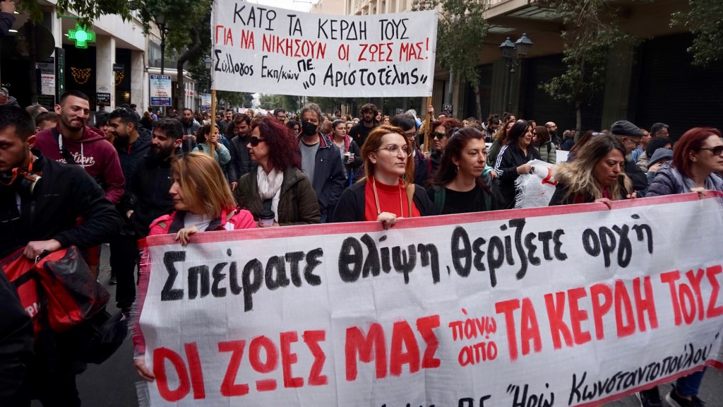 Η ΑΤΕ-ΕΚΑ διακηρύσσει, “Κάτω η δολοφονική κυβέρνηση της ΝΔ, να μπει φραγμός σε κάθε επίδοξο διαχειριστή της αντιλαϊκής πολιτικής Να ανατραπεί η πολιτική των ιδιωτικοποιήσεων και της φτώχειας που στηρίζουν ΣΥΡΙΖΑ και ΠΑΣΟΚ-ΚΙΝΑΛ.”