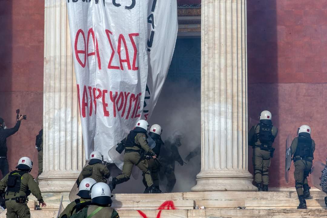 Στα Προπύλαια τα ΜΑΤ επιτέθηκαν με χημικά για να μπουν μέσα στην κατάληψη του χτιρίου του Πανεπιστήμιου Αθήνας. Και εδώ ηττήθηκαν και οπισθοχώρησαν!