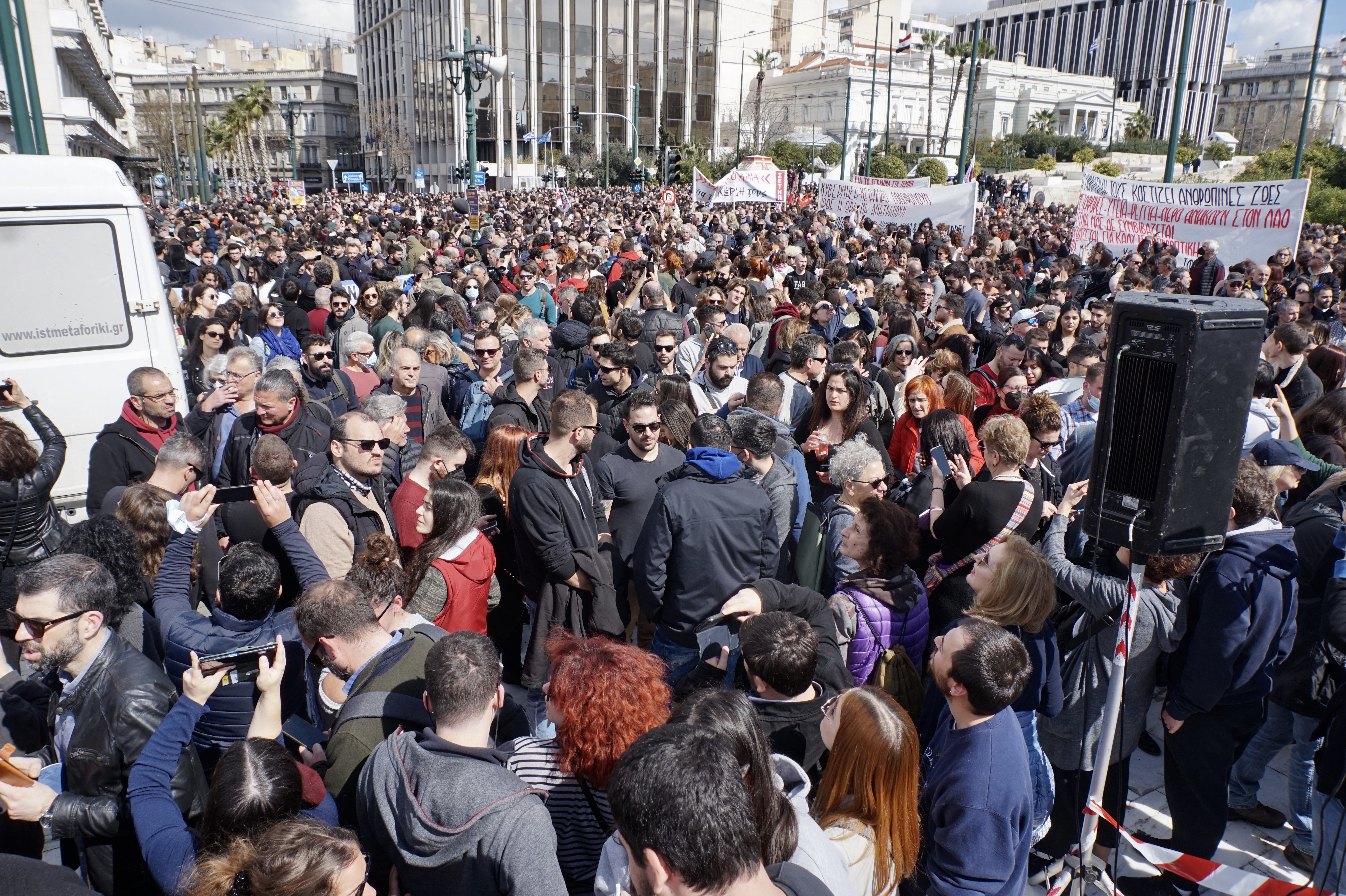 Αλλά σήμερα ήταν μια πολύ διαφορετική μέρα με τις δεκάδες χιλιάδες αποφασισμένους μαθητές/τριες, φοιτητές/τριες, νεολαία και εργαζομένους στην πλατεία που είχαν γίνει η φωνή εκδίκησης των νεκρών!