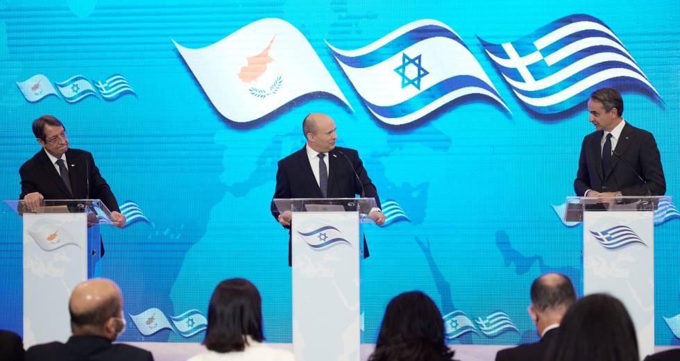 Συνεργάτες των σιονιστών! Συνάντηση πρωθυπουργών Κύπρου, Ισραήλ και Μητσοτάκη 7 Δεκέμβρη 2021. (Φωτο πρωθυπουργικό γραφείο)