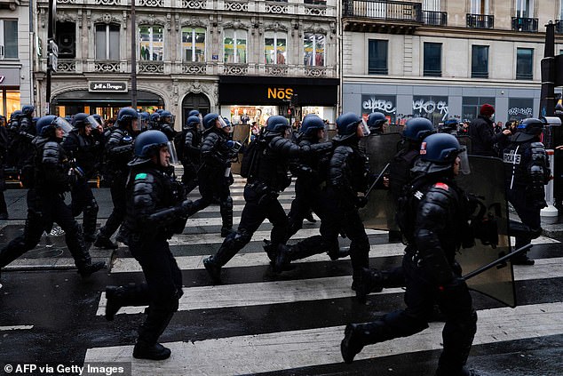 Επίθεση αστυνομικών στους διαδηλωτές χτες Παρασκευή βράδυ στο Παρίσι. (Φωτο ΑFP)