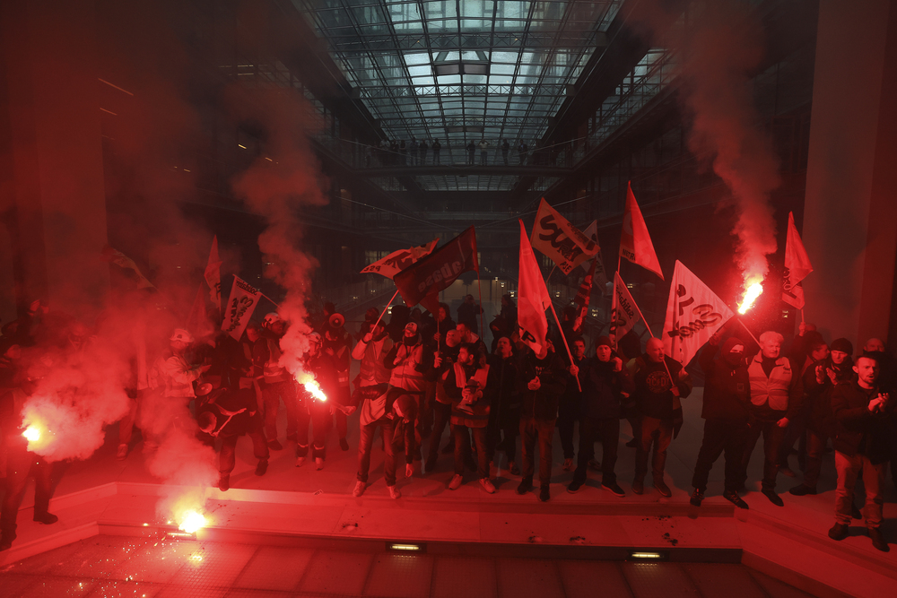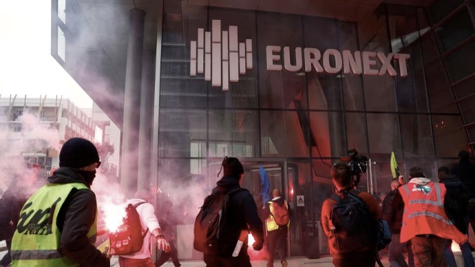 Εκατοντάδες εργάτες διαδηλωτές χτες Πέμπτη πρωί στο Παρίσι κατέλαβαν για λίγες ώρες το ισόγειο μεγάλου κέντρου γραφείων της εταιρείας Euronext που διαχειρίζεται χρηματιστήριο.