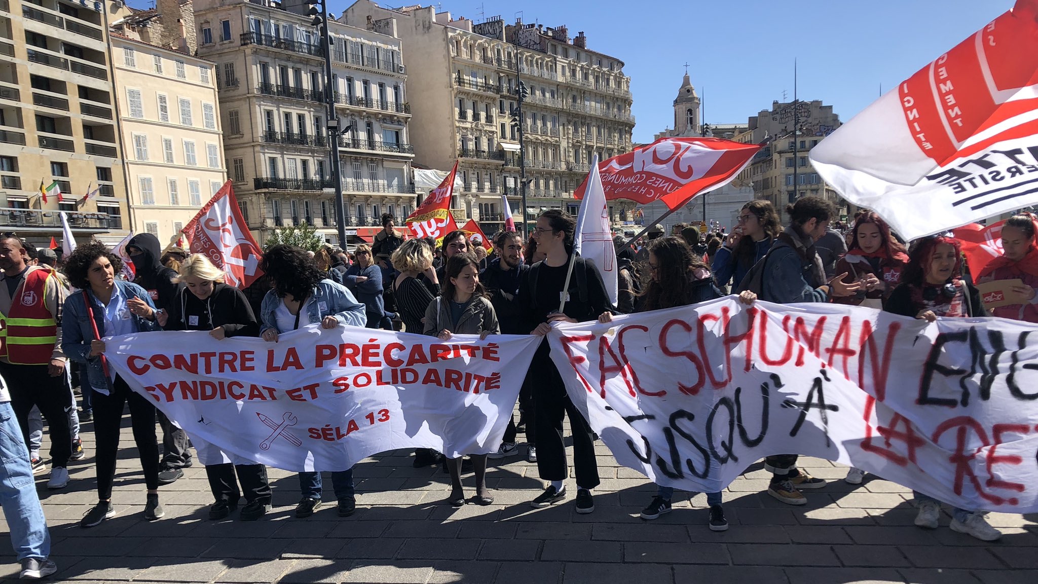 Από τη συγκέντρωση για την απεργιακή πορεία της περασμένης Πέμπτης στη Μασαλία. (Φωτο Cole Stangler)