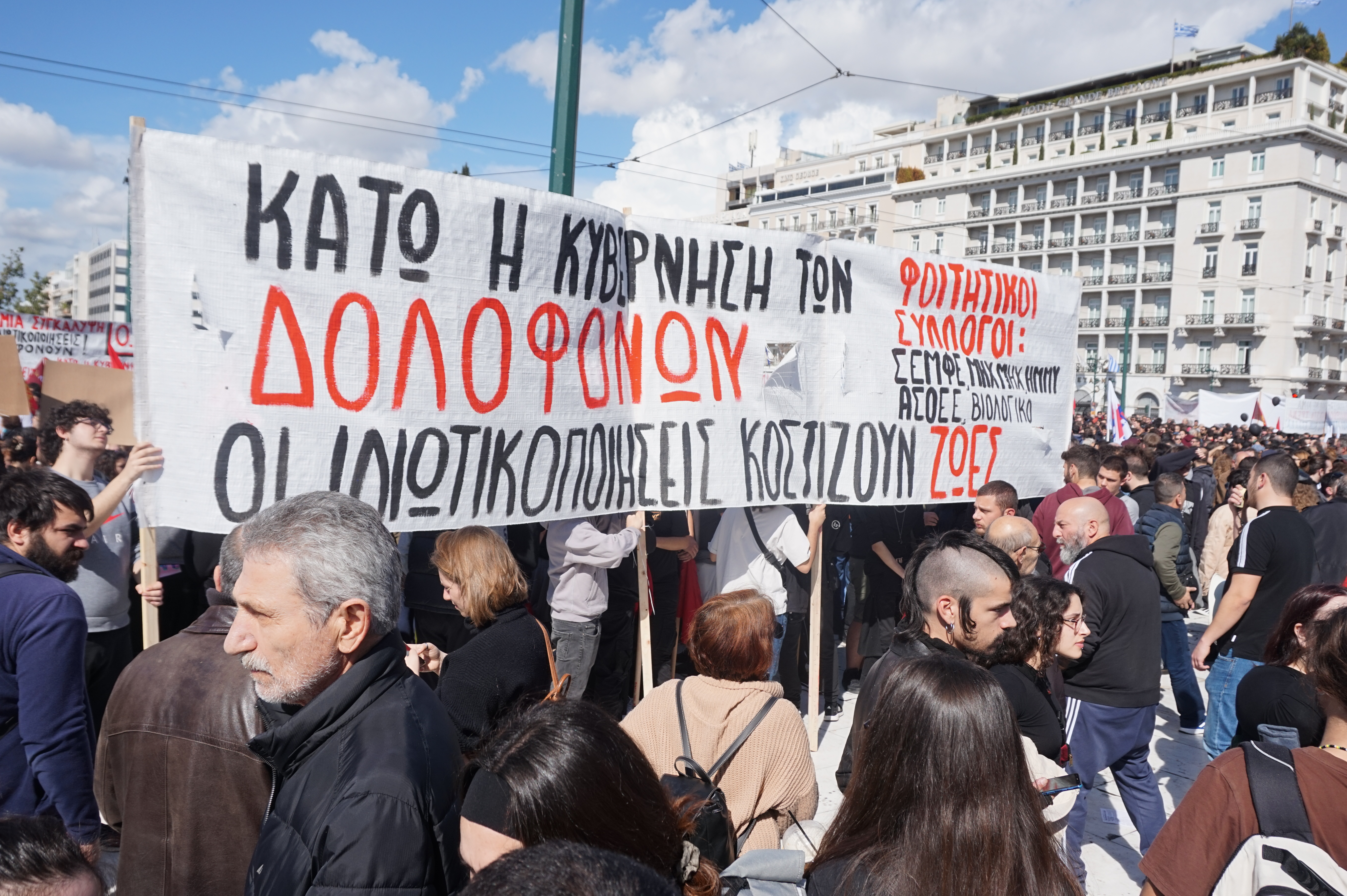 Φοιτητικό πανό στις μαζικές αντικυβερνητικές διαδηλώσεις του περασμένου Μάρτη. Τώρα οι φοιτητικοί σύλλογοι να καλέσουν για Πανεργατικής Πανελλαδικής Συνέλευση ενότητας και δράσης ανατροπής της χούντας Μητσοτάκη. (Φωτο Ε.Α.)