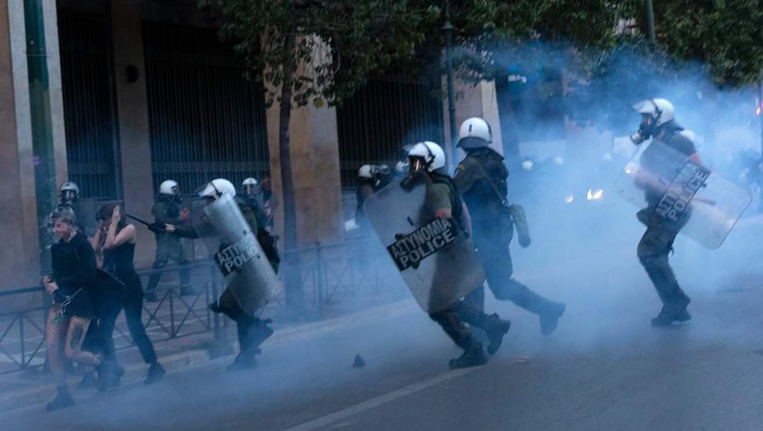 Τα ΜΑΤ – πραιτοριανοί της ΕΕ και των μνημονιακών κυβερνήσεων σε επίθεση στους διαδηλωτές/τριες την Πρωτομαγιά στην Αθήνα. (Φωτο Μάριος Λώλος)