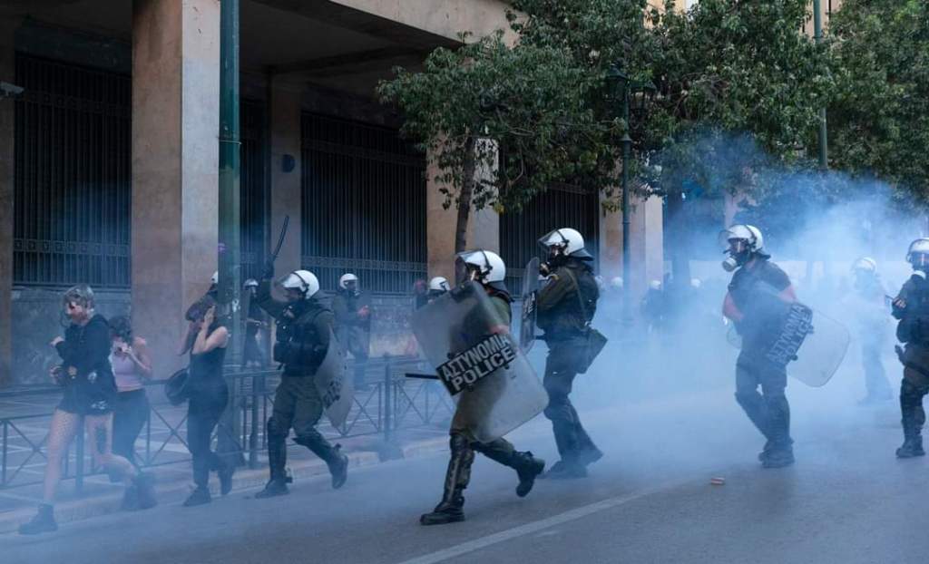 Τα ΜΑΤ σε επίθεση στην οδό Σταδίου ενάντια στη μεγάλη πορεία της 15ης Ιούνη. Τα εργατικά σωματεία και οι φοιτητικοί σύλλογοι πρέπει να απαιτήσουν τη διάλυση ΜΑΤ και αστυνομίας. Για συγκρότηση Εργατικής Πολιτοφυλακής και Ομάδων Αυτοάμυνας ενάντια στους ρατσιστές-φασίστες. (Φωτο Μάριος Λώλος)