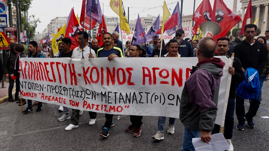 Πρόσφυγες και μετανάστες στη φετινή απεργιακή πορεία της Πρωτομαγιάς στην Αθήνα. (Φωτο Ε.Α.)