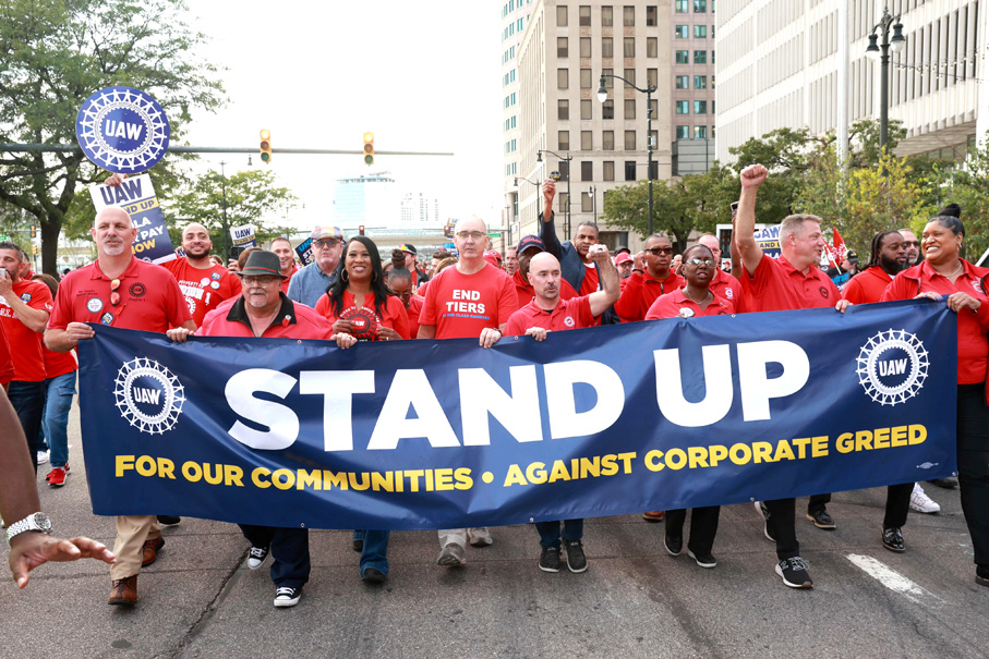 Από τη μεγάλη απεργιακή διαδήλωση εργατών αυτοκινητοβιομηχανίας στο Ντιτρόϊτ στις 15 Σεπτέμβρη πρώτη μέρα τής πανεθνικής απεργίας. (Φωτο UAW)