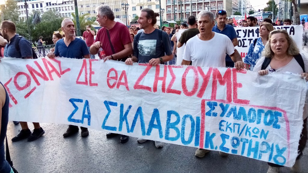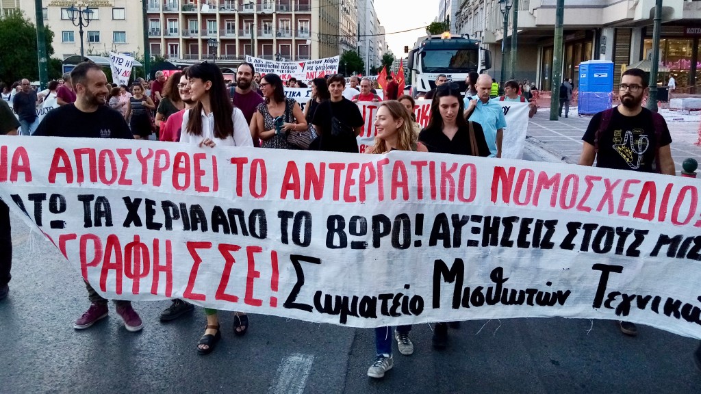 Στην Αθήνα ο Συντονισμός των Πρωτοβάθμιων Σωματείων και Εργατικών Συλλογικοτήτων (που υποστηρίζεται από ΑΝΤΑΡΣΥΑ και άλλα κόμματα και οργανώσεις της Αριστεράς) καλεί σε εργατική διαδήλωση ενάντια “στο νομοθετικό έκτρωμα που σχεδιάζεται”, αντεργατικό νομοσχέδιο Γεωργιάδη, την Πέμπτη 14/9 6:30 μ.μ. στην πλατεία Κλαυθμώνος.