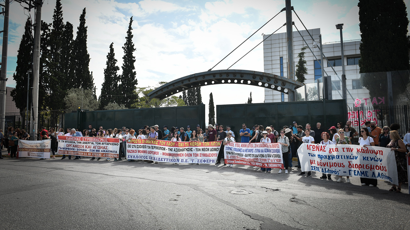 Από την χτεσινή απεργιακή συγκέντρωση εκπαιδευτικών στο Υπουργείο Παιδείας για τις τεράστιες ελλείψεις, πάνω από 20.000, καθηγητών-δασκάλων στα σχολεία. (Φωτο 902.gr)