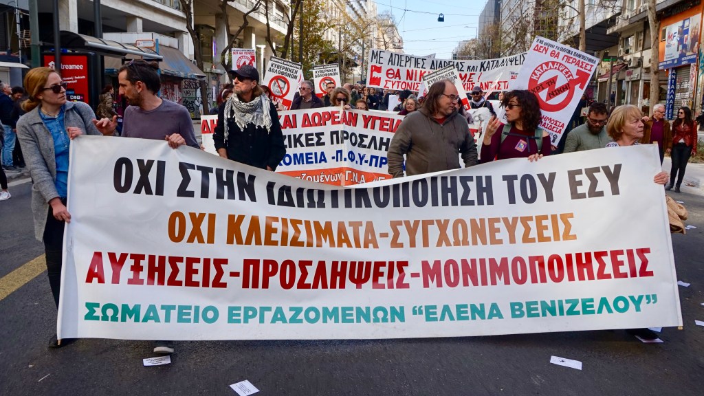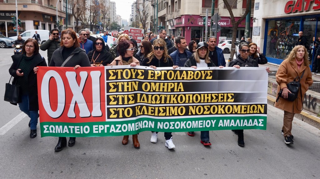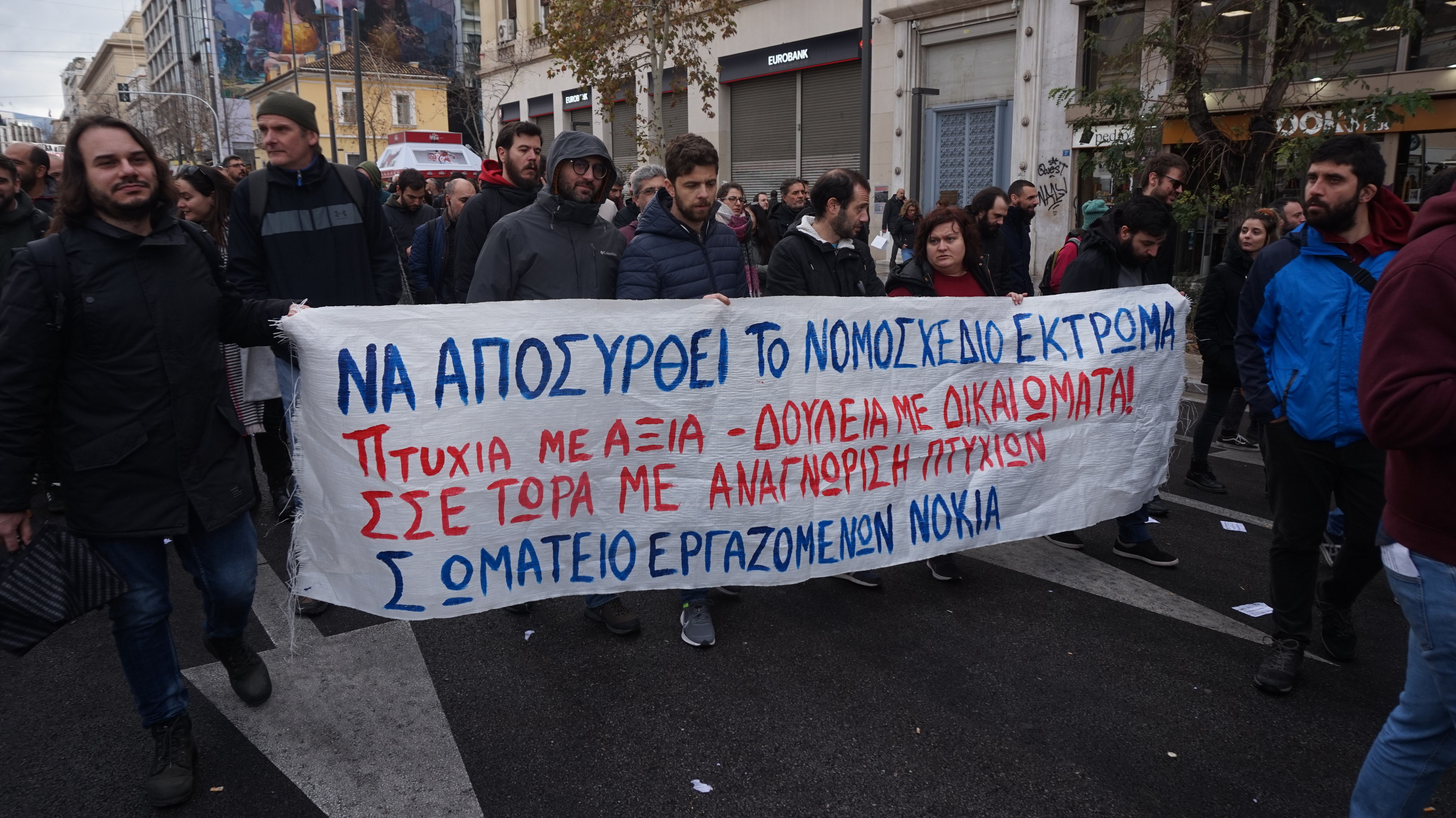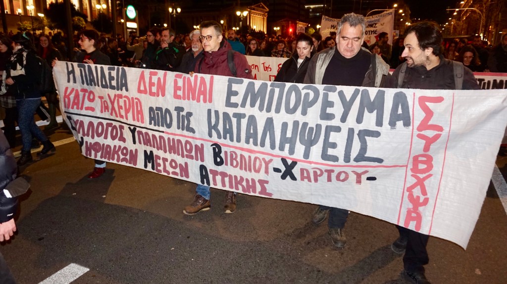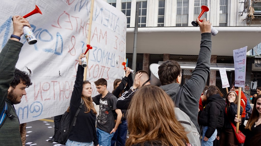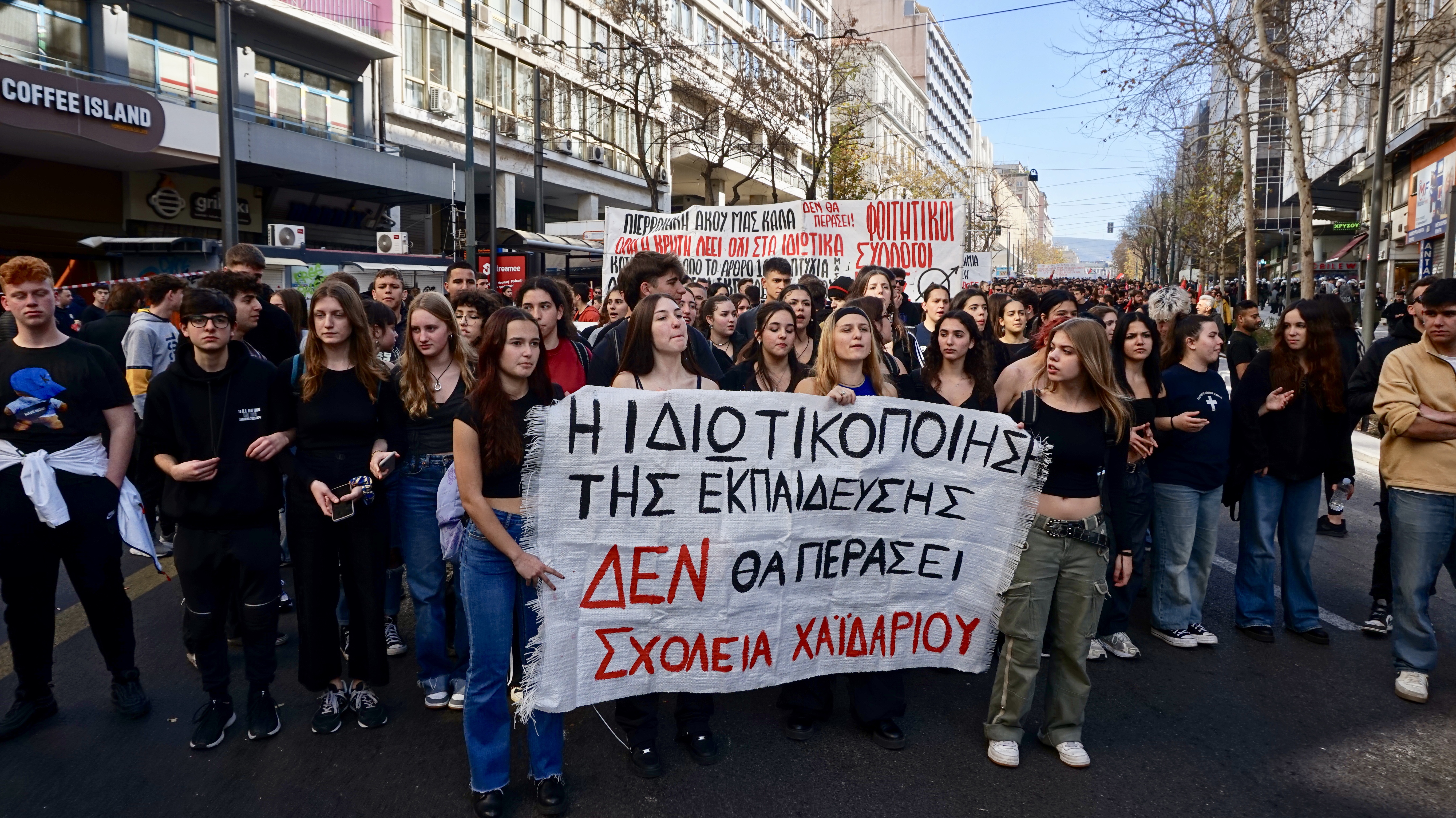 Οι εργαζόμενοι και οι φοιτητές, μαθητές απαίτησαν σήμερα ΚΛΙΜΑΚΩΣΗ ΤΩΡΑ για να μη ψηφιστεί το νομοσχέδιο για τα ιδιωτικά πανεπιστήμια, για να αποσυρθούν τα σχέδια για απογευματινά χειρουργεία, για αυξήσεις και συλλογικές συμβάσεις, για προσλήψεις σε νοσοκομεία και δημόσιους οργανισμούς, όχι στη συμμετοχή στον πόλεμο ενάντια στους Παλαιστινίους!
