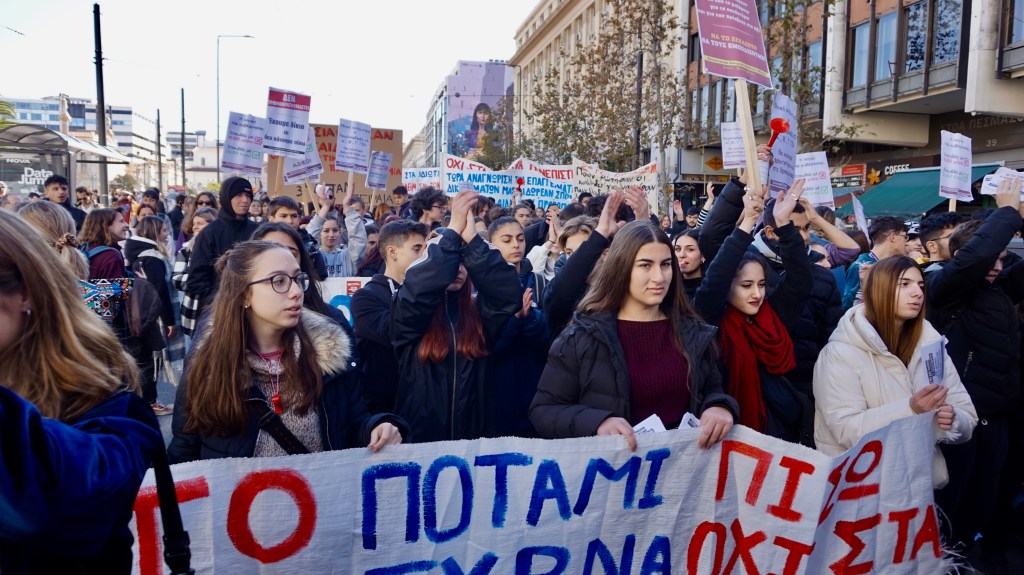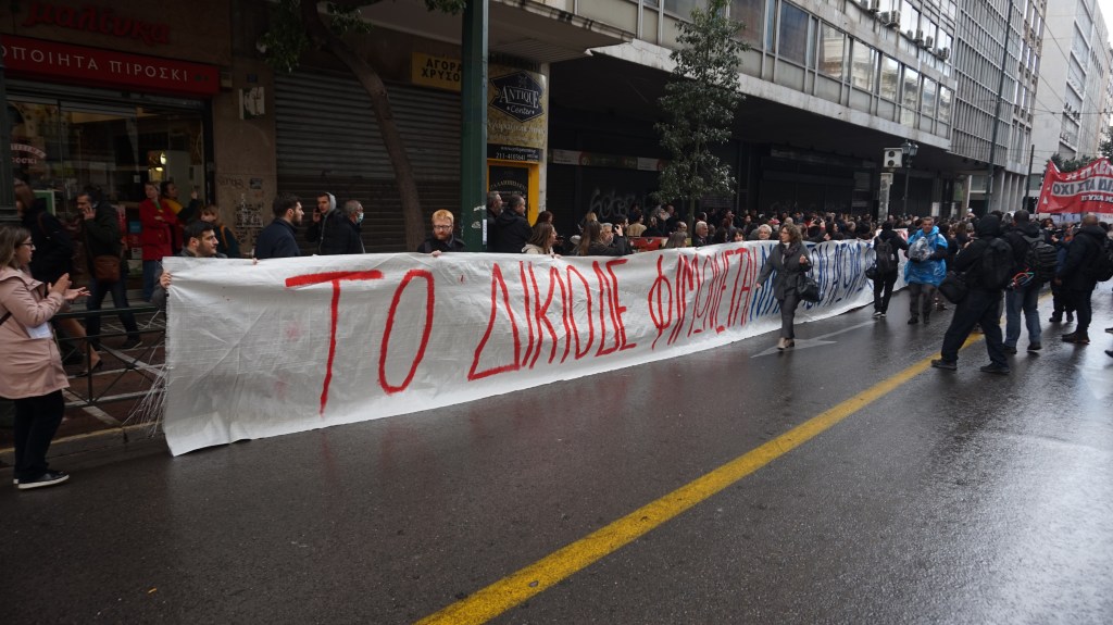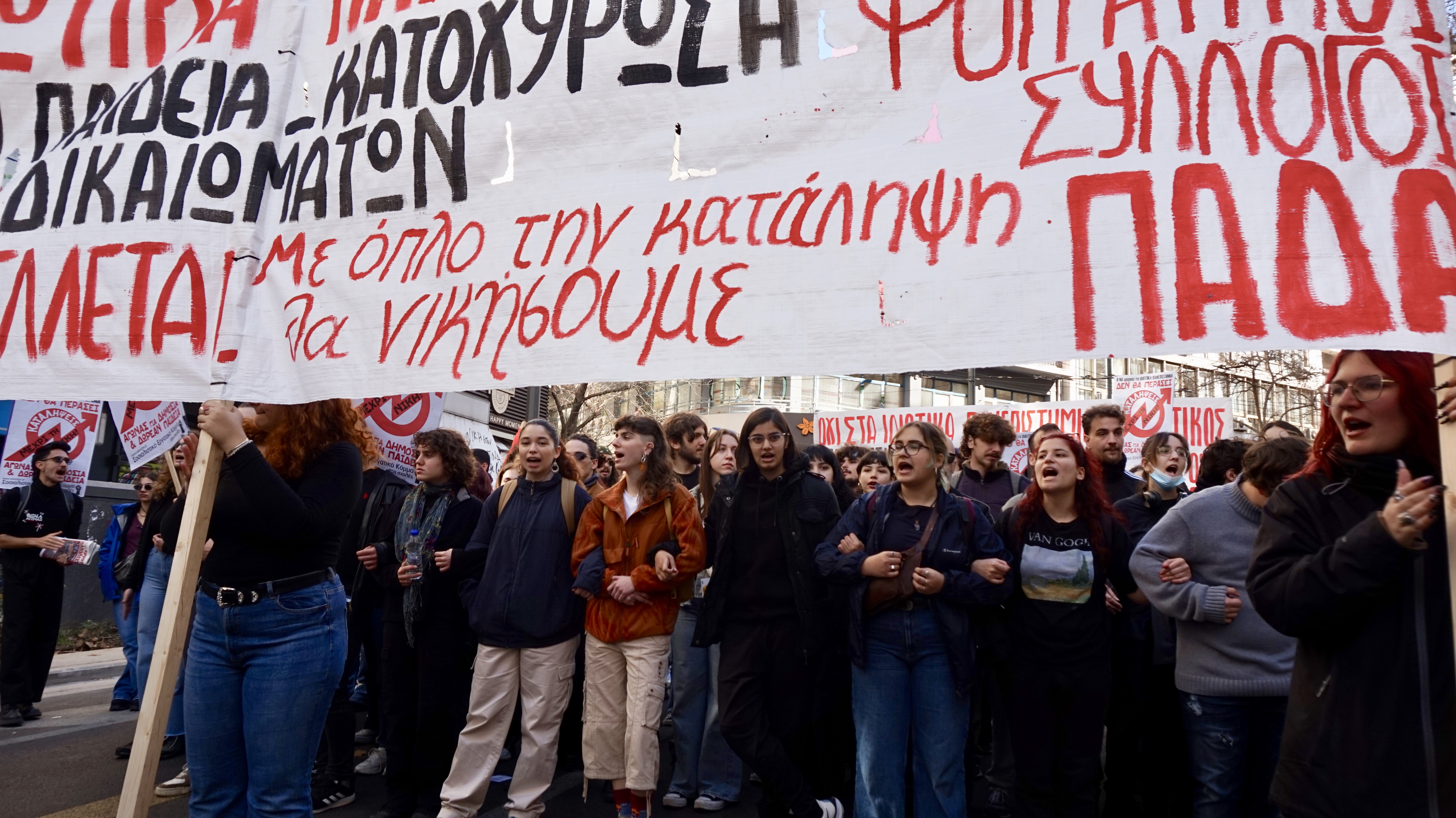 Αρκετά τα πανό ενάντια στην καταστολή από χούντα Μητσοτάκη – ΜΑΤ – πρυτάνεις, αλλά απουσίαζαν τα πανό με “κάτω η κυβέρνηση των δολοφόνων” όπως στην απεργιακή συγκέντρωση και πορεία της Τετάρτης.
