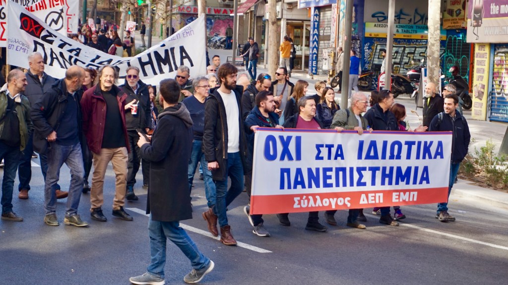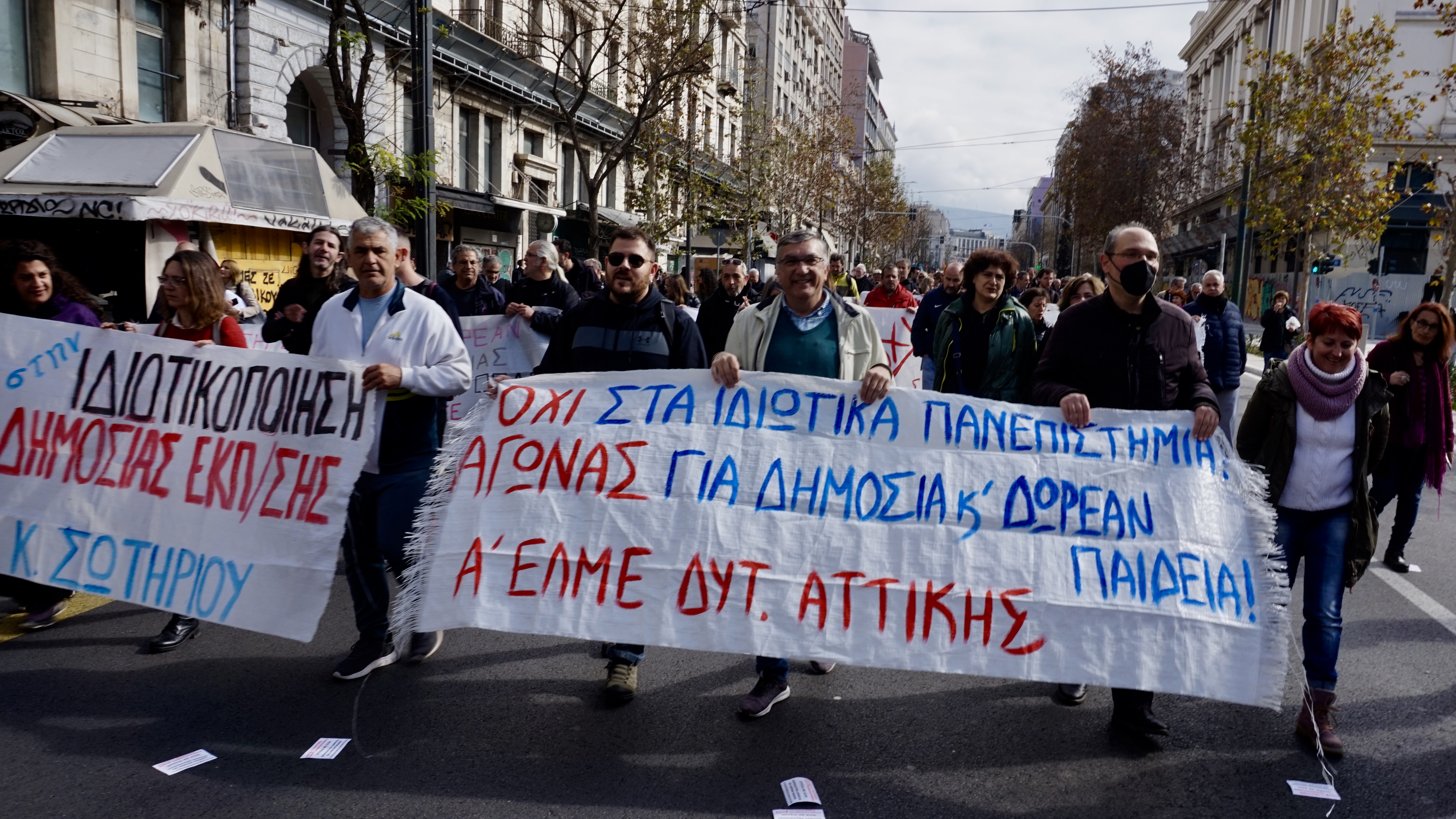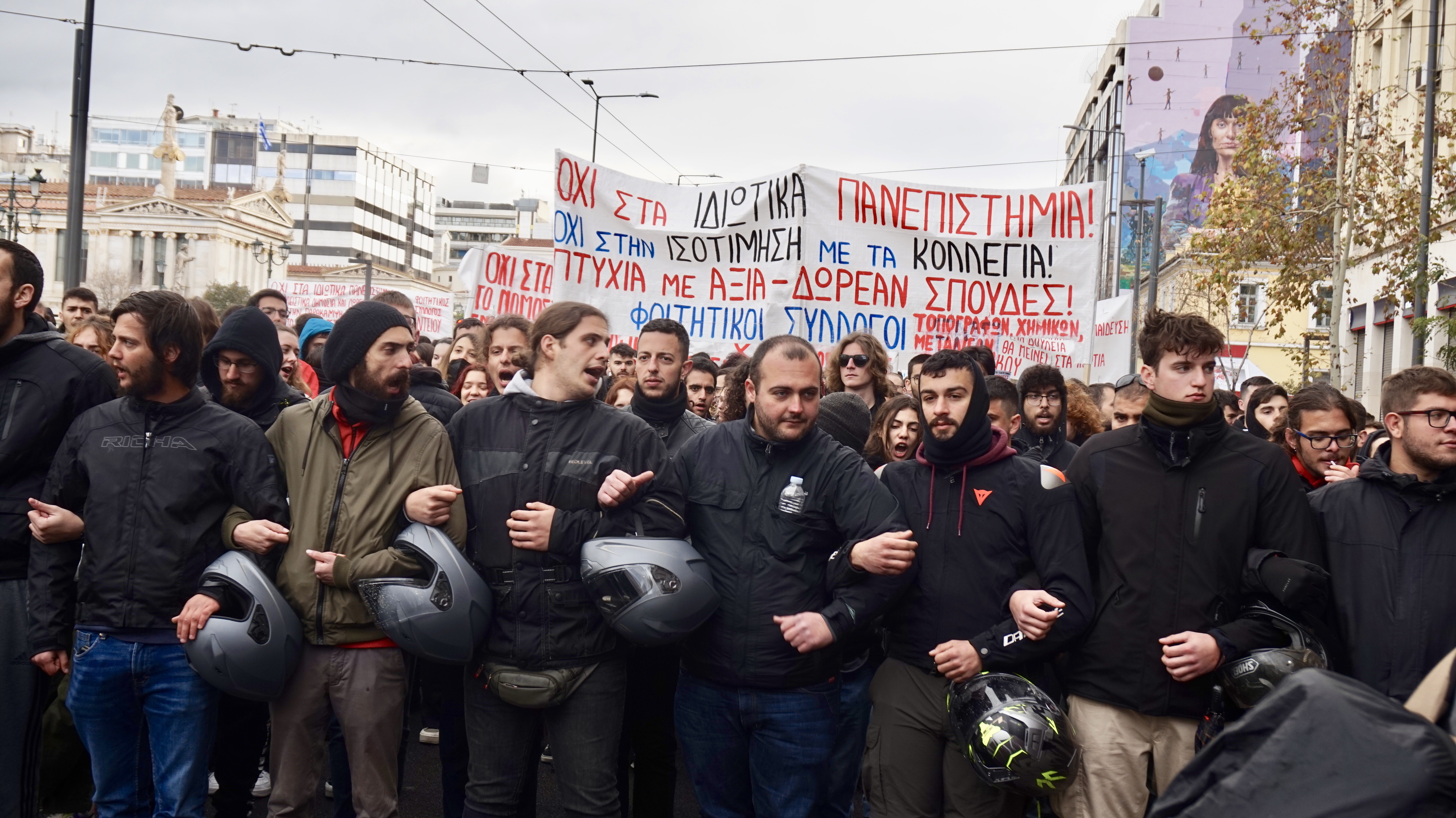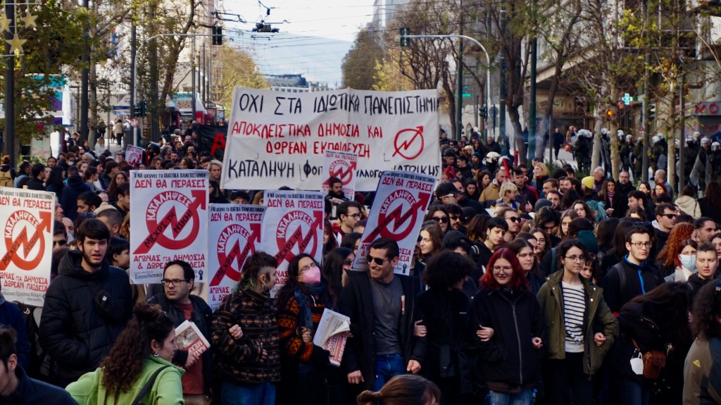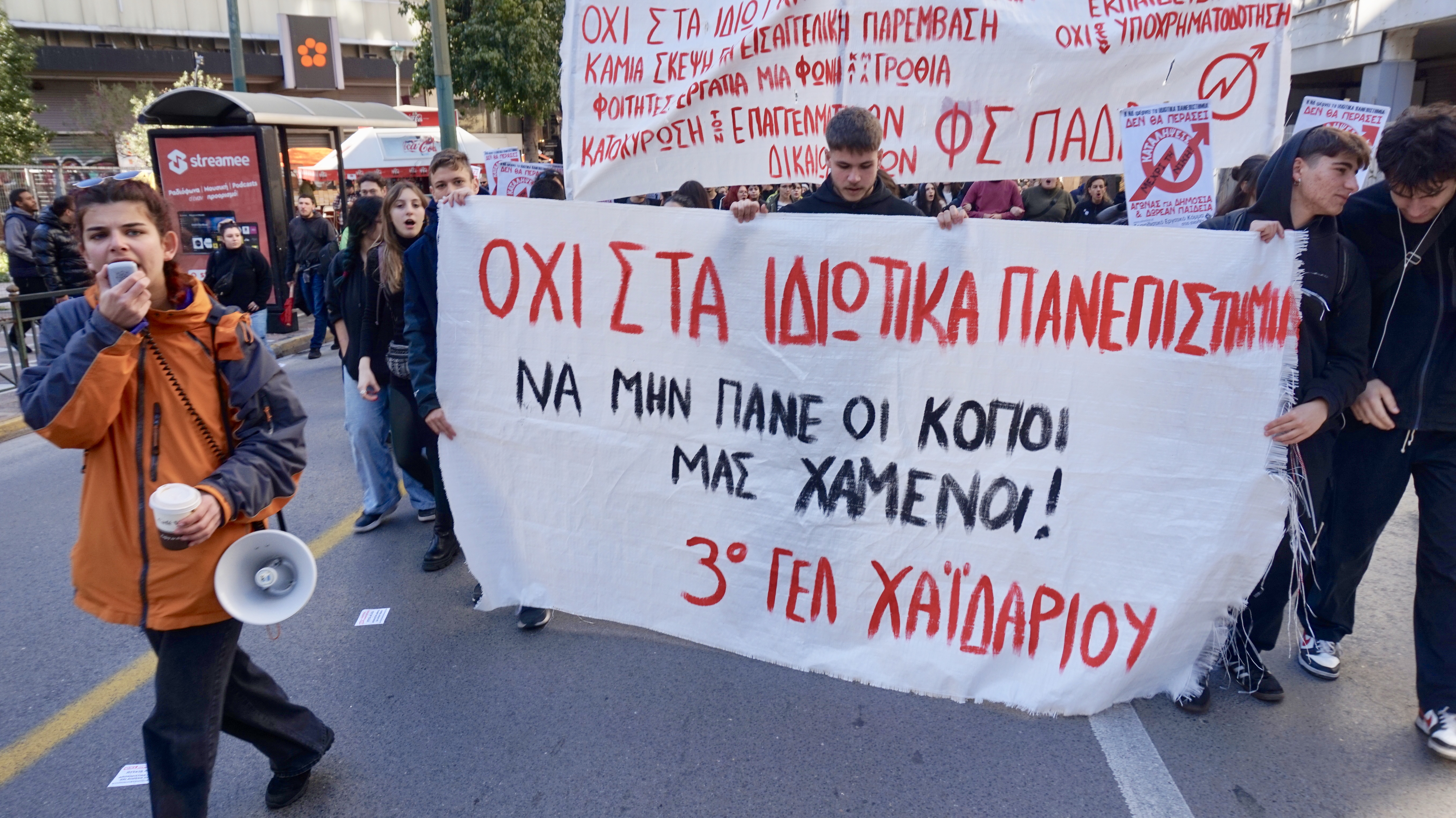 Πάνω από 3.000 φοιτητές/φοιτήτριες διαδήλωσαν σήμερα το μεσημέρι στην Αθήνα ενάντια στο νομοσχέδιο ιδιωτικών πανεπιστημίων της χούντας Μητσοτάκη που ανοίγει ορθάνοιχτα την πόρτα για δίδακτρα και ιδιωτικοποίηση της παιδείας.
