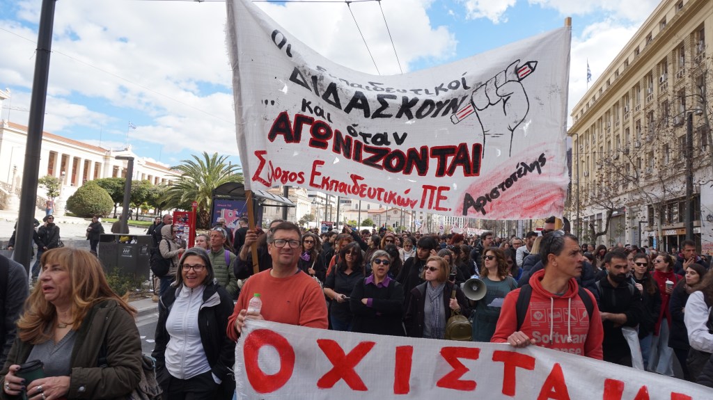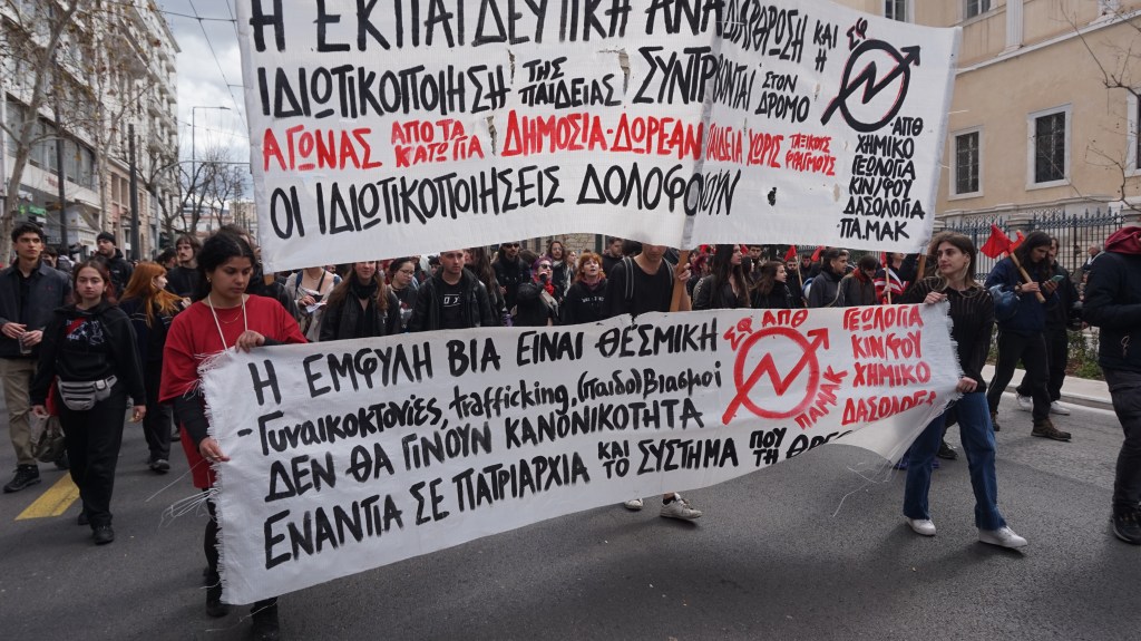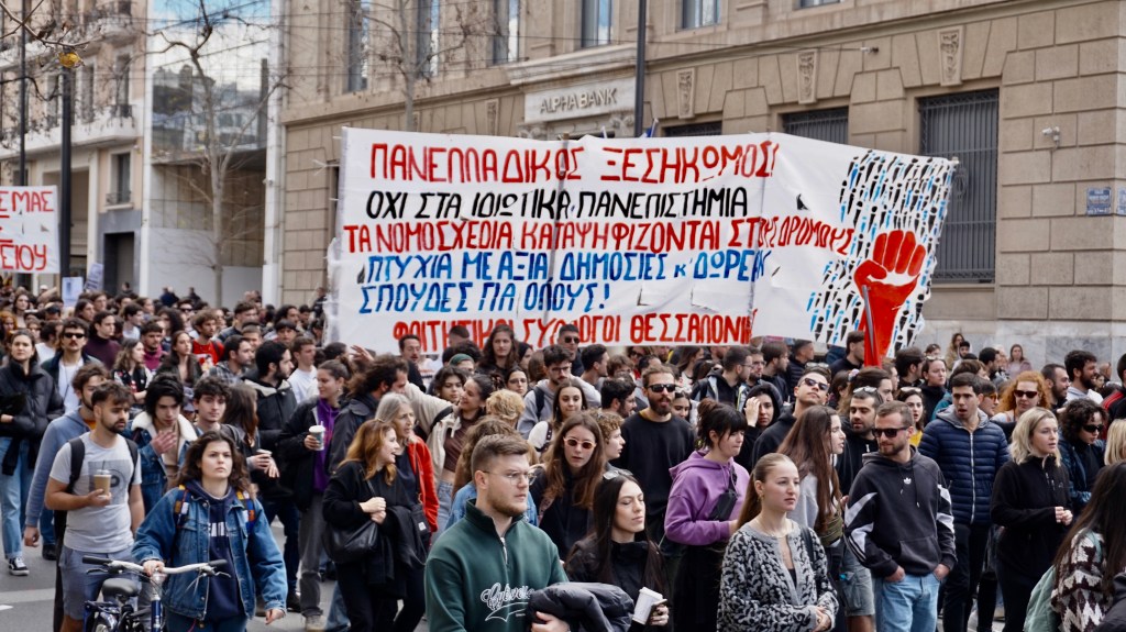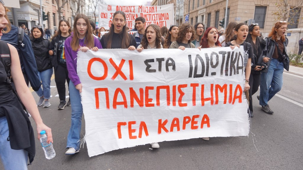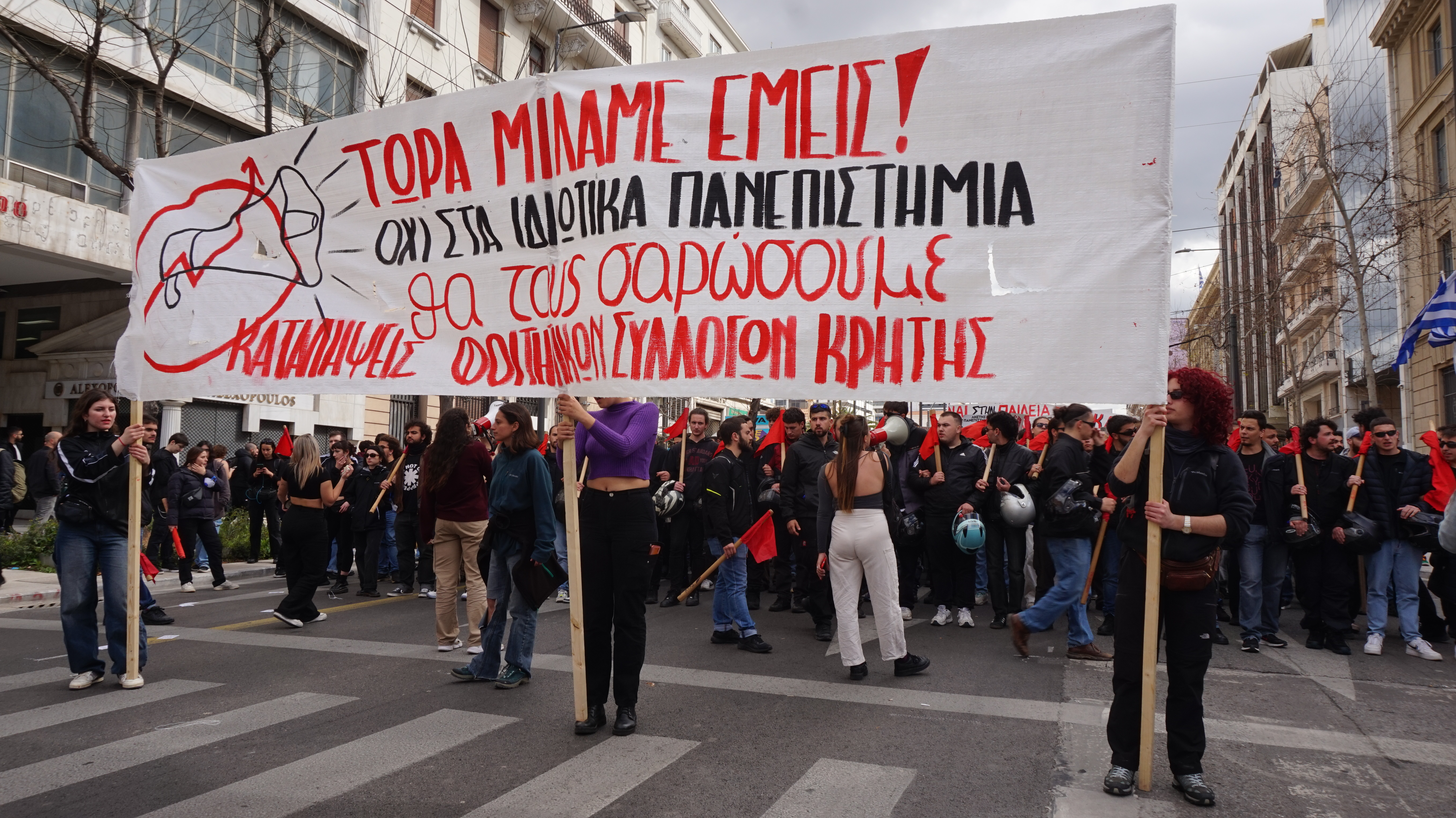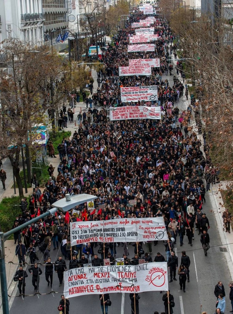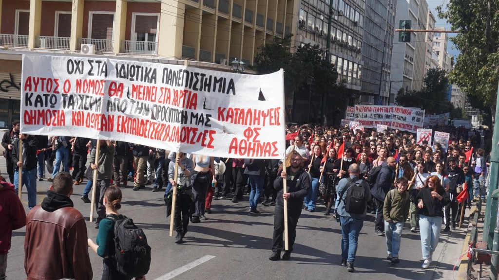 Συνδιαλλαγές με τη χούντα Μητσοτάκη των ιδιωτικών πανεπιστημίων, της διάλυσης της δημόσιας υγείας, του εγκλήματος των Τεμπών, των αντεργατικών νόμων, της ακρίβειας, της υποστήριξης της γενοκτονίας του Ισραήλ, των φασιστών της Ουκρανίας!