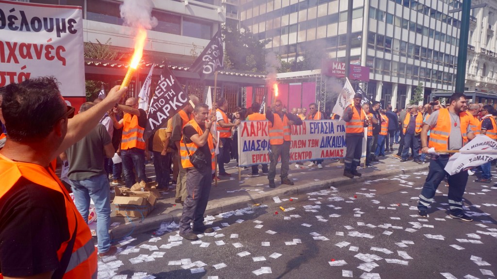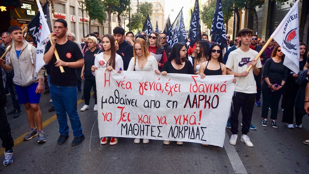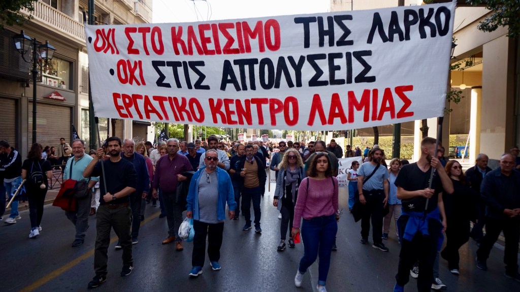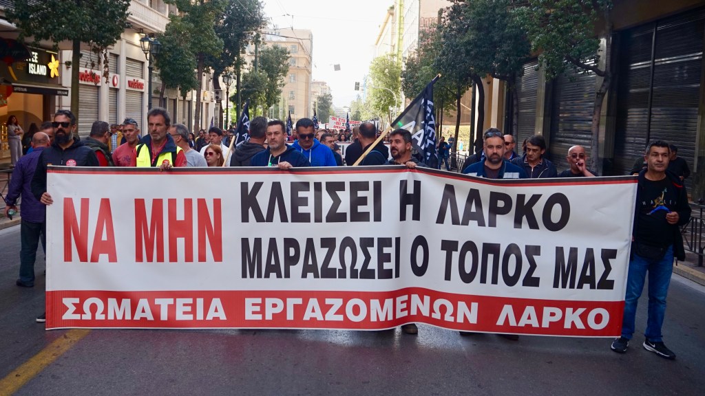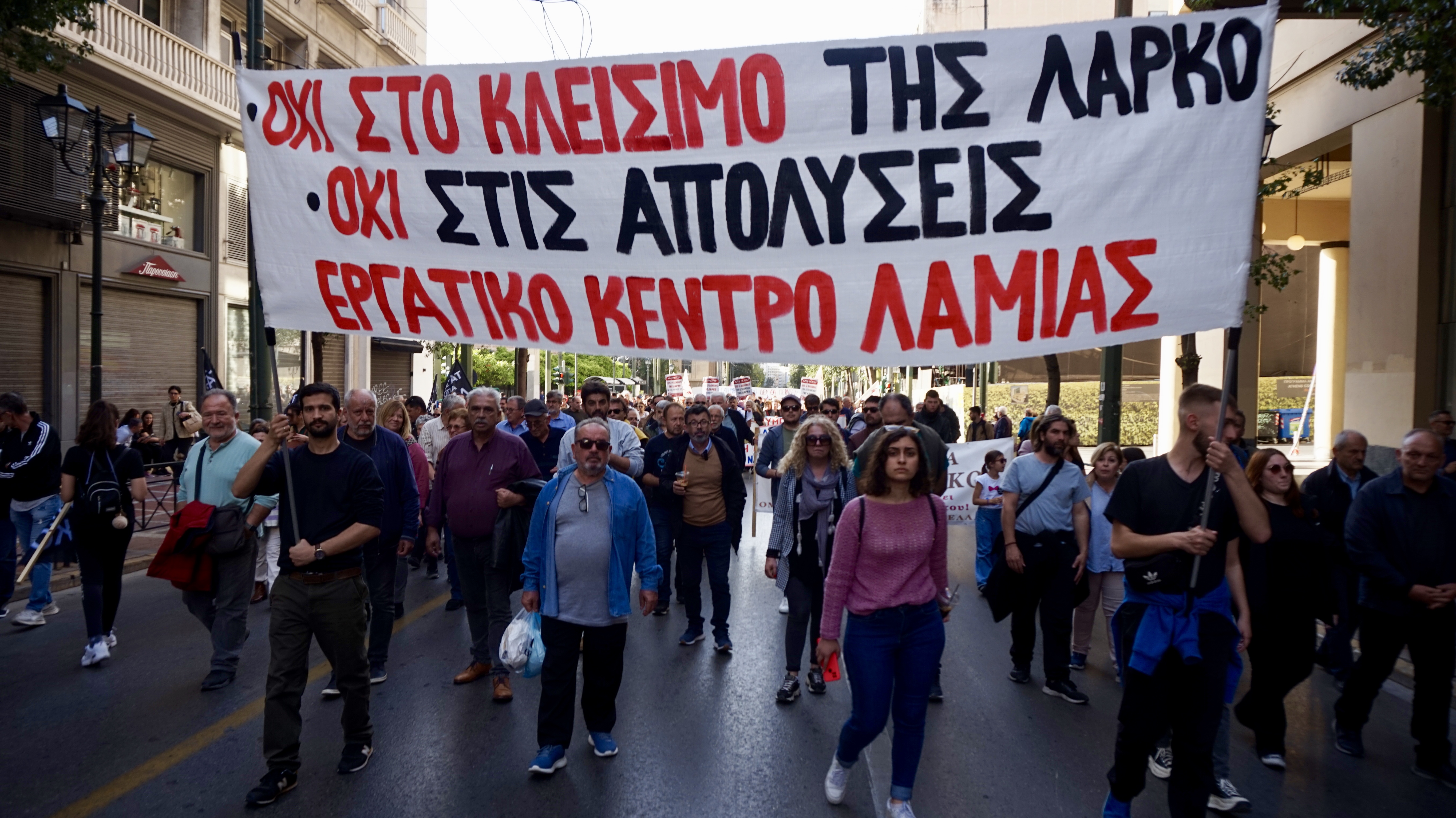 Χτες Πέμπτη πάνω από 3.000 εργάτες της ΛΑΡΚΟ με τις οικογένειες τους, μαζί και αντιπροσωπείες εργατικών σωματείων, που υποστηρίζουν το ΠΑΜΕ, και εκατοντάδες φοιτητές/τριες, πραγματοποίησαν πορεία διαμαρτυρίας ενάντια στο κλείσιμο της ΛΑΡΚΟ και τις απολύσεις όλων των εργατών, από την Ομόνοια στο Υπουργείο Οικονομικών, Σύνταγμα.