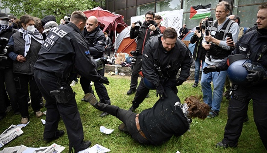 Οι κυβερνήσεις σε Γαλλία, Γερμανία, Ολλανδία και άλλες χώρες της ΕΕ, έστειλαν οπλισμένους αστυνομικούς μέσα στα πανεπιστήμια για να διαλύσουν τις διαμαρτυρίες και να συλλάβουν τους φοιτητές. Με ιδιαίτερη βία η αστυνομία της Γερμανίας επιτέθηκε την Τρίτη στις φοιτητικές διαμαρτυρίες στο «Ελεύθερο» Πανεπιστήμιο Βερολίνου καθώς και στο Πανεπιστήμιο Χούμπολτ στο ιστορικό κέντρο της πόλης. Αυτό είναι το «ευρωπαϊκό κεκτημένο» δημοκρατίας και ελεύθερης έκφρασης της ΕΕ!