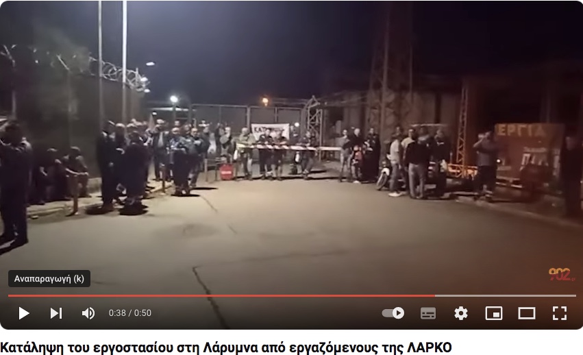 ► ΠΑΝΕΡΓΑΤΙΚΗ ΣΥΝΕΛΕΥΣΗ ΓΙΑ ΟΡΓΑΝΩΣΗ ΓΕΝΙΚΗΣ ΑΠΕΡΓΙΑΣ ΓΙΑ ΤΗ ΝΙΚΗ ΤΩΝ ΕΡΓΑΤΩΝ ΤΗΣ ΛΑΡΚΟ & ΠΑΛΑΙΣΤΙΝΗΣ , ΟΧΙ ΣΤΟ ΞΕΠΟΥΛΗΜΑ! ΣΥΝΤΑΓΜΑ ΠΑΡΑΣΚΕΥΗ 7 μ.μ.– ΚΑΤΑΛΗΨΗ ΕΡΓΟΣΤΑΣΙΟΥ ΛΑΡΚΟ ΛΑΡΥΜΑΝ ΠΕΜΠΤΗ ΒΡΑΔΥ!