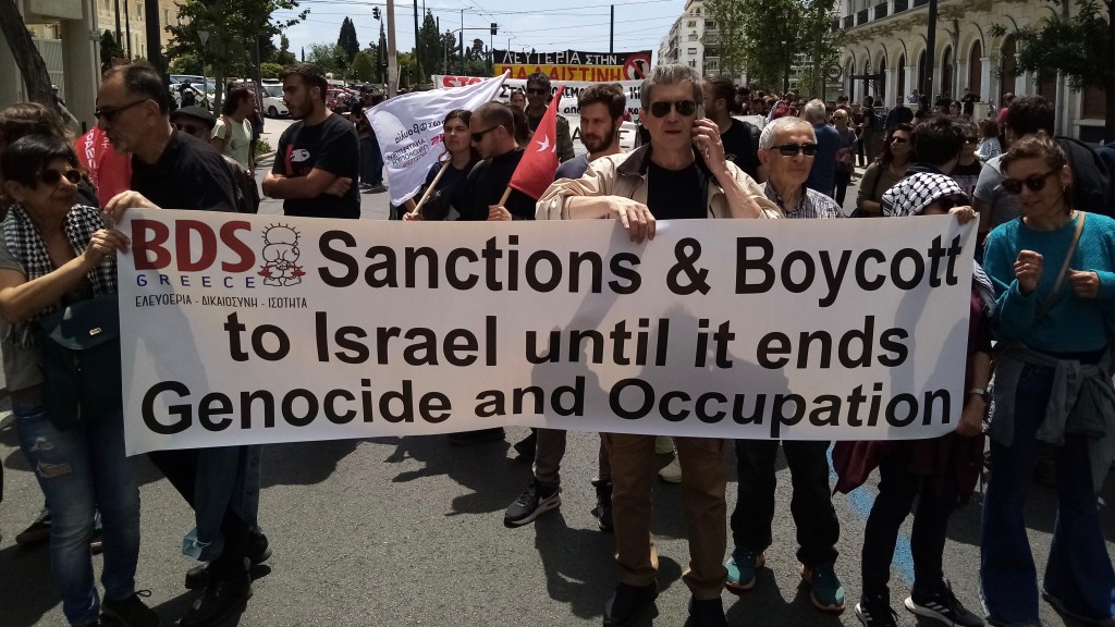 Τώρα χρειάζονται απεργιακές κινητοποιήσεις παντού υπέρ της Παλαιστίνης και όχι μόνο πορείες διαμαρτυρίας. Για Γενική Απεργία ανατροπής της χούντας Μητσοτάκη συνεργάτη του εγκληματία πολέμου Νετανιάχου, για κυβέρνηση εργαζομένων που θα κλείσει τη Σούδα, θα αποχωρήσει από ΕΕ και ΝΑΤΟ, και προσφέρει κάθε βοήθεια στην Παλαιστίνη για τη δημιουργία Παλαιστινιακού κράτους. –