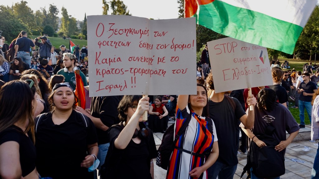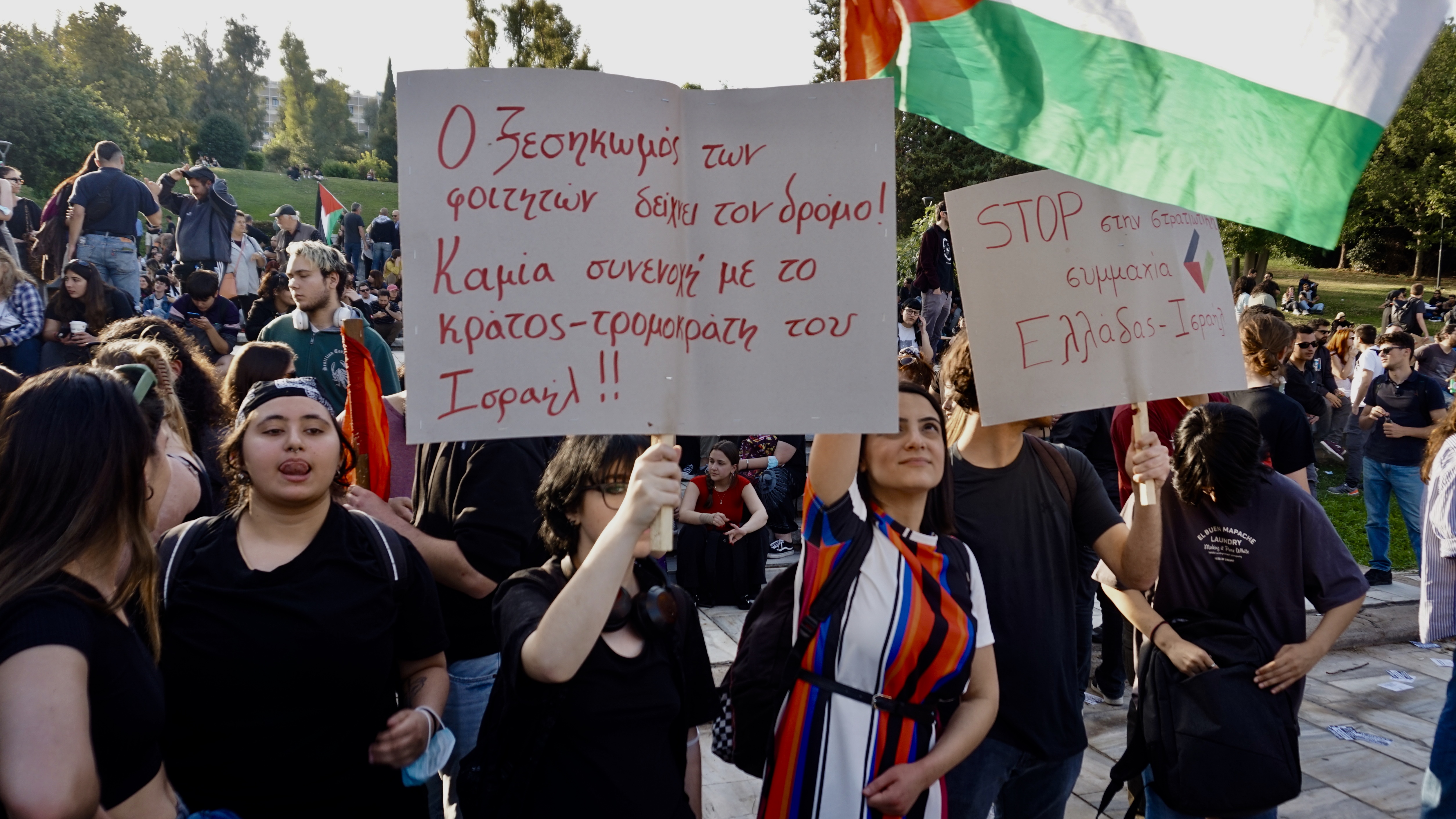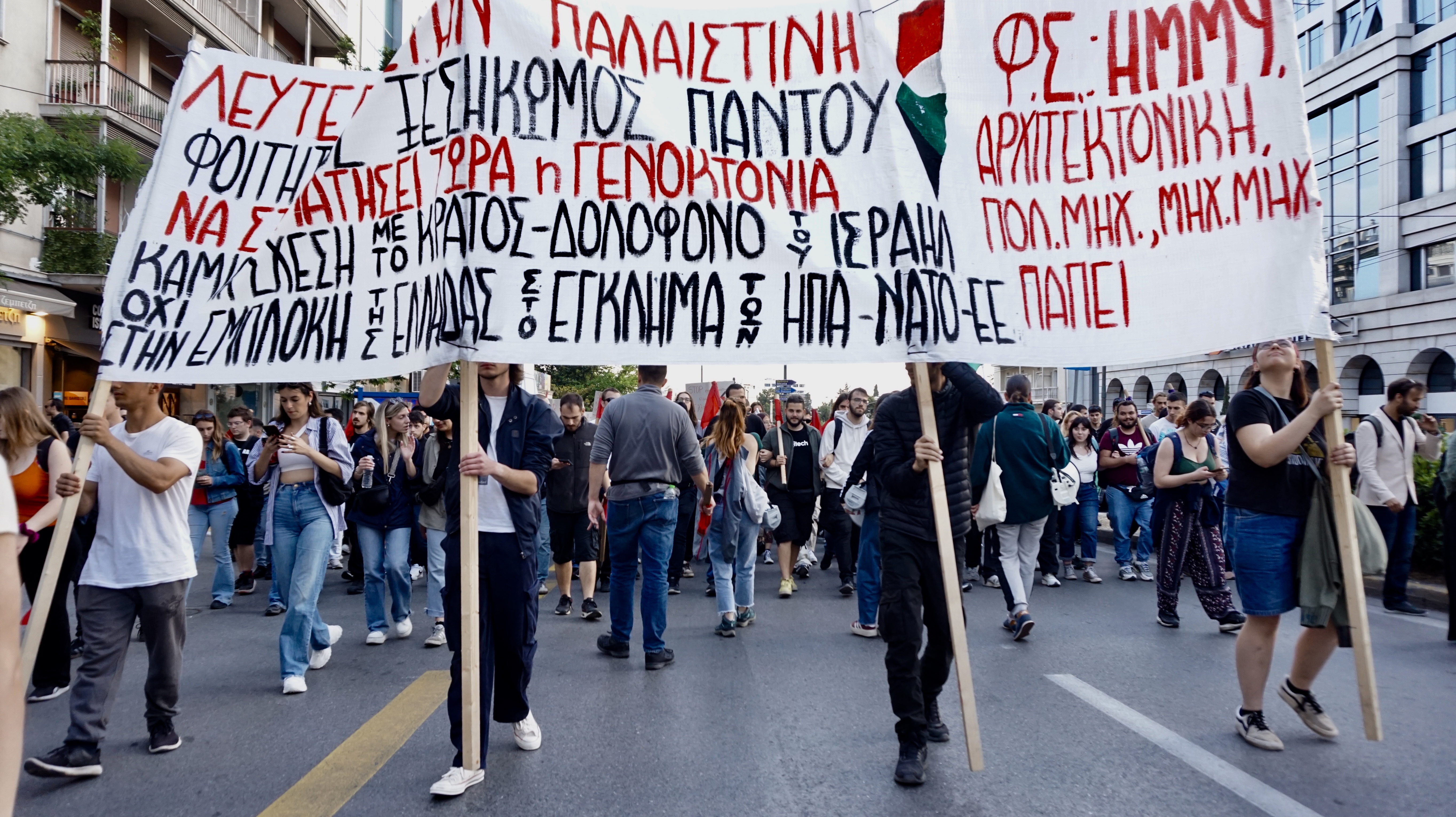 Η χούντα Μητσοτάκη επιτίθεται στους διαδηλωτές αλληλεγγύης στην Παλαιστίνη, συνεχίζει τη στρατιωτική συνεργασία με τους σιονιστές, και προσπαθεί να απελάσει από την Ελλάδα 9 αλληλέγγυους με την Παλαιστίνη (από χώρες της ΕΕ και τη Βρετανία) επειδή συμμετείχαν στην κατάληψη από φοιτητές/τριες της Νομικής Αθήνας στις 14 Μάη!