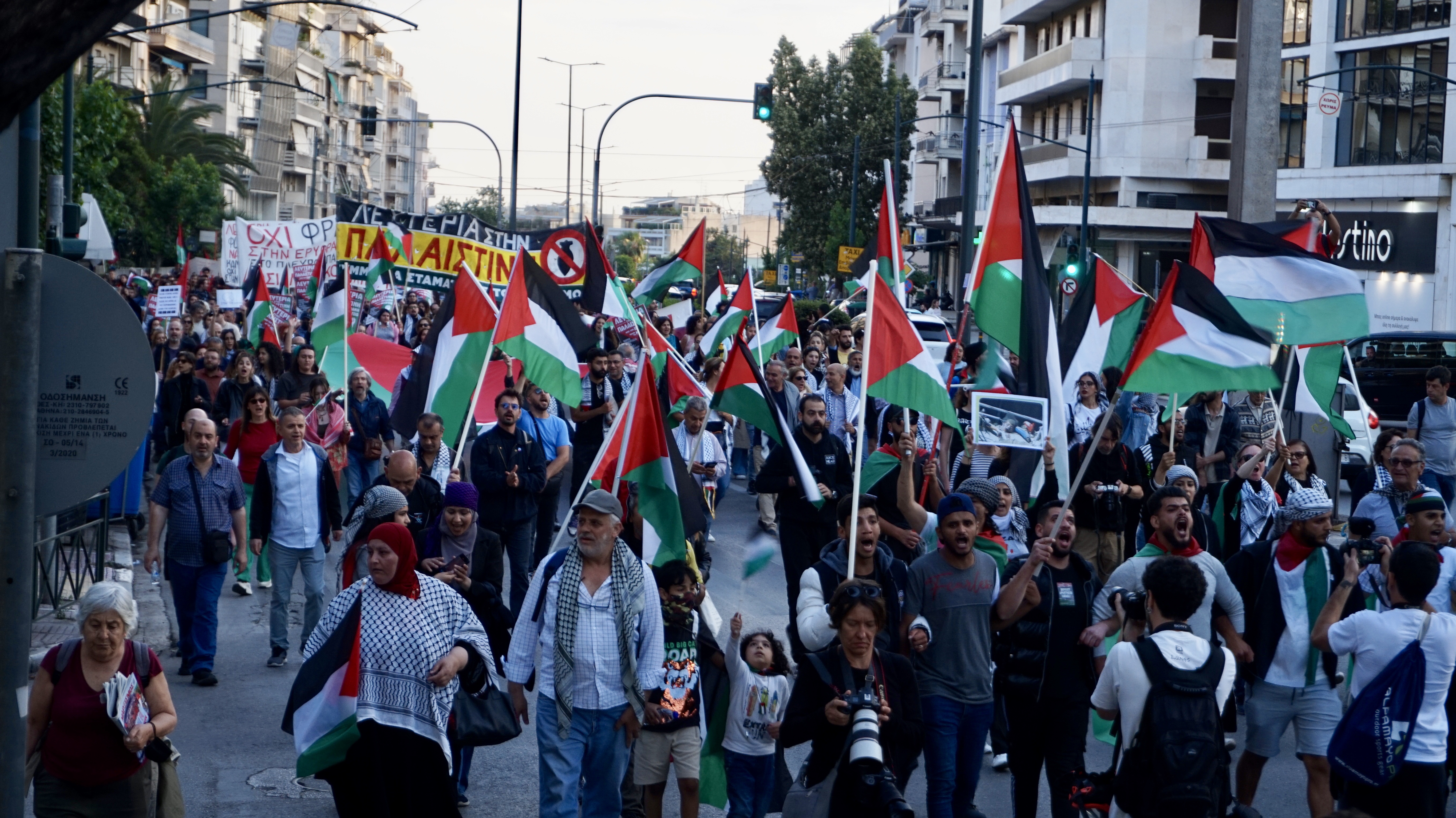 Από την πορεία χιλιάδων στην Ισραηλινή Πρεσβεία στην Αθήνα 15 Μάη 2024, επέτειο της Νάκμπα (= Καταστροφής) (Φωτο Ε.Α.)