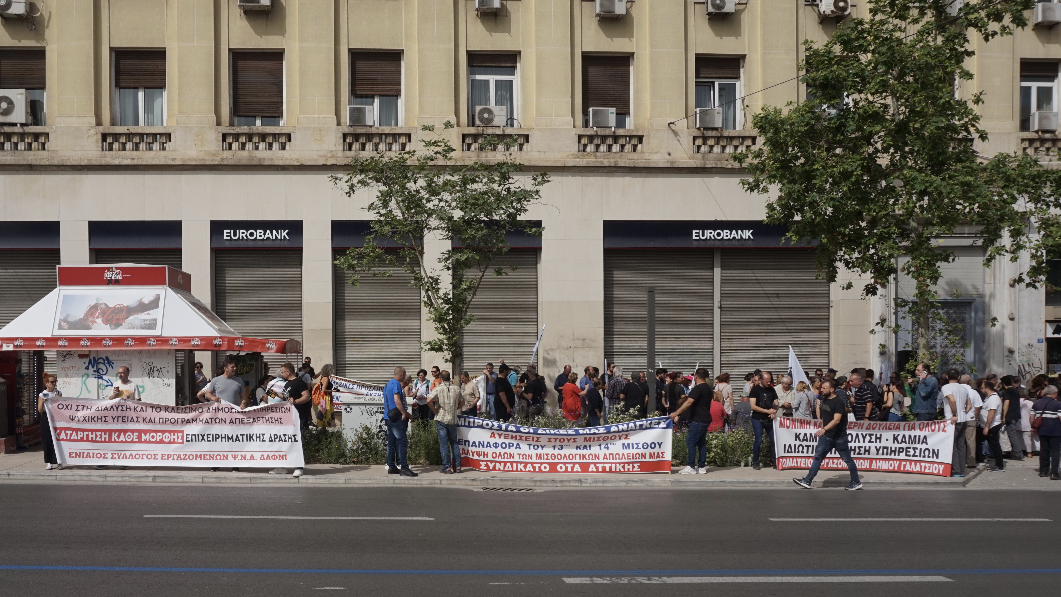 Στην πλατεία Κλαυθμώνος πραγματοποιήθηκε συγκέντρωση ΓΣΕΕ και ΑΔΕΔΥ (συμμετοχή περίπου 2.500) με λιγοστά πανό εργατικών σωματείων καθώς για μια ακόμη φορά οι υποταγμένες στα Μνημόνια και στον καπιταλισμό συνδικαλιστικές ηγεσίες αρνήθηκαν να κινητοποιήσουν την οργανωμένη εργατική τάξη.