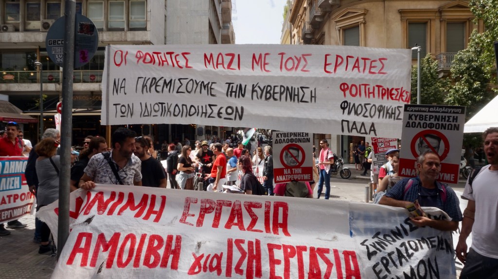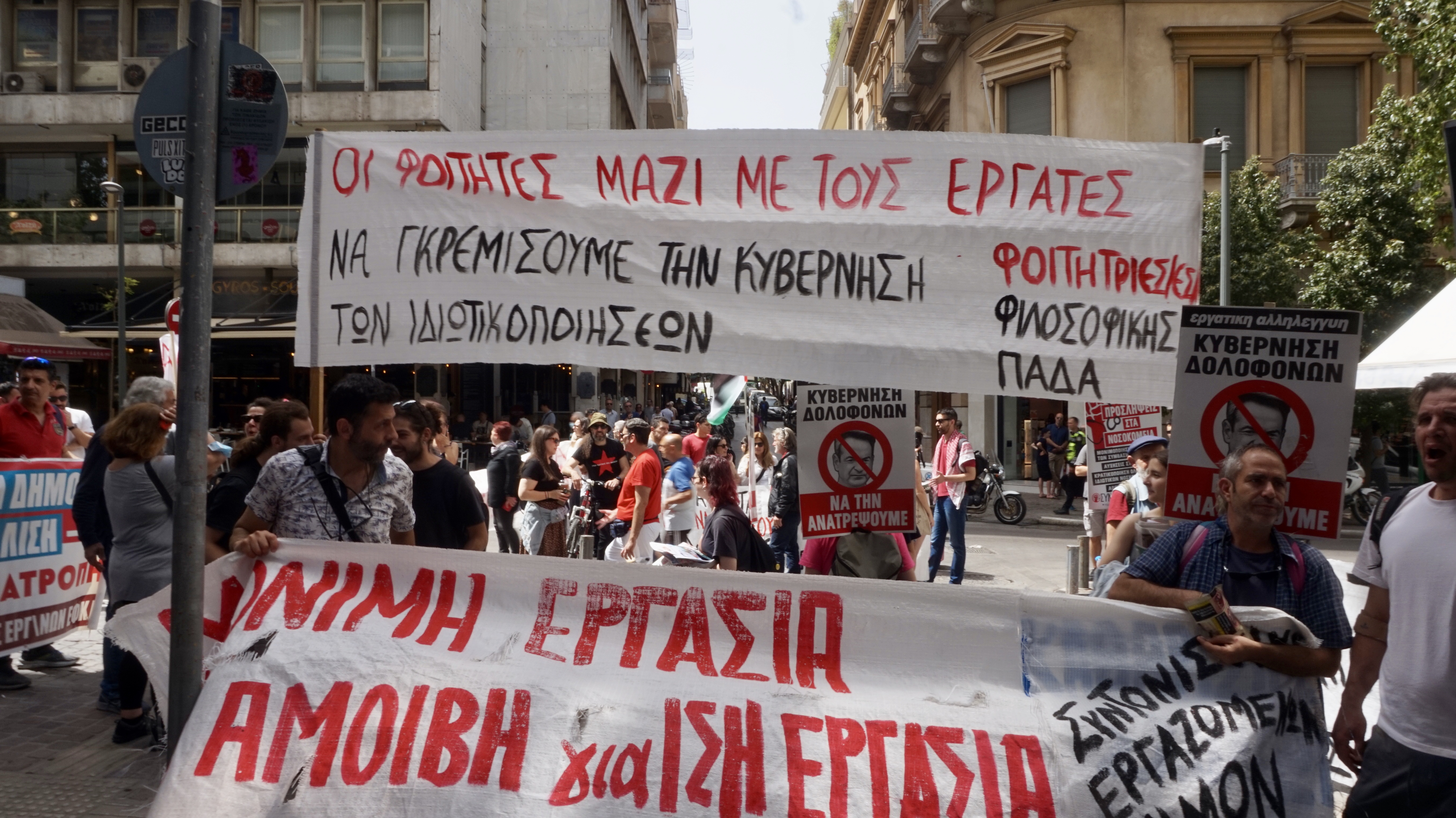 Τώρα είναι ώρα ενιαίου αγωνιστικού μετώπου εργαζομένων και φοιτητικού κινήματος στην Ελλάδα με κάλεσμα για μια Πανελλαδική Πανεργατική Παμφοιτητική Συνέλευση για συντονισμό του αγώνα και οργάνωση Γενικής Πολιτικής Απεργίας Διαρκείας για τη συντριβή των Μνημονίων, για ανατροπή της κοινοβουλευτικής χούντας Μητσοτάκη.