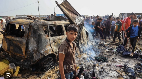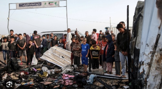 Προχτές Κυριακή βράδυ ισραηλινά αεροπλάνα βομβάρδισαν καταυλισμό σκηνών, όπου ζούσαν εκατοντάδες εκτοπισμένες παλαιστινιακές οικογένειες, στην περιοχή Τελ αλ Σουλτάν στη δυτική Ράφα και δολοφόνησαν πάνω από 50 Παλαιστίνιους οι περισσότεροι παιδιά και γυναίκες.