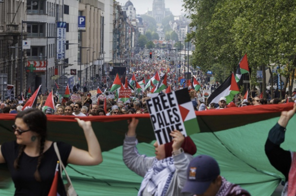 Από την τεράστια πορεία δεκάδων χιλιάδων στις Βρυξέλες στις 19 Μάη 2024 υπέρ της Παλαιστίνης. (Φωτο Nicolas Maeterlinck)