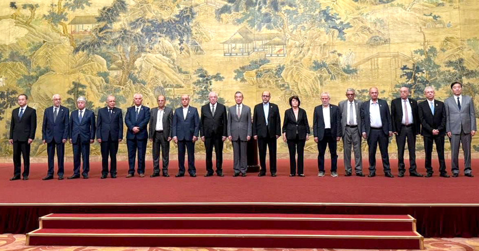Αντιπρόσωποι των 14 παλαιστινιακών οργανώσεων προχτές στο Πεκίνο. (Φωτο The News Line)