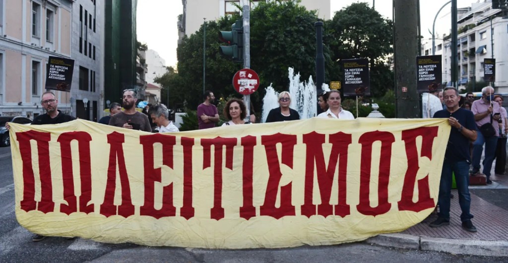 Από τη σημερινή (Παρασκευή) κινητοποίηση που οργάνωσε ο Σύλλογος Αρχαιολόγων στο Βυζαντινό Μουσείο. (Φωτο patris.gr)