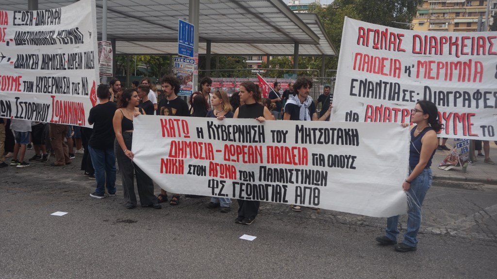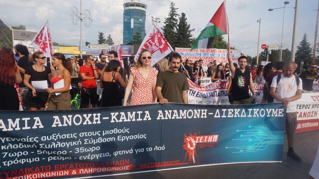 Απαιτείται η οργάνωση Γενικής Πολιτικής Απεργίας Διαρκείας με καταλήψεις και μπλοκαρίσματα για τη συντριβή των Μνημονίων, τη νίκη της Παλαιστίνης και την ανατροπή της χούντας Μητσοτάκη. Αυτό είναι το καθήκον μπροστά στους αγωνιστές/στριες της εργατικής τάξης και νεολαίας σήμερα. –