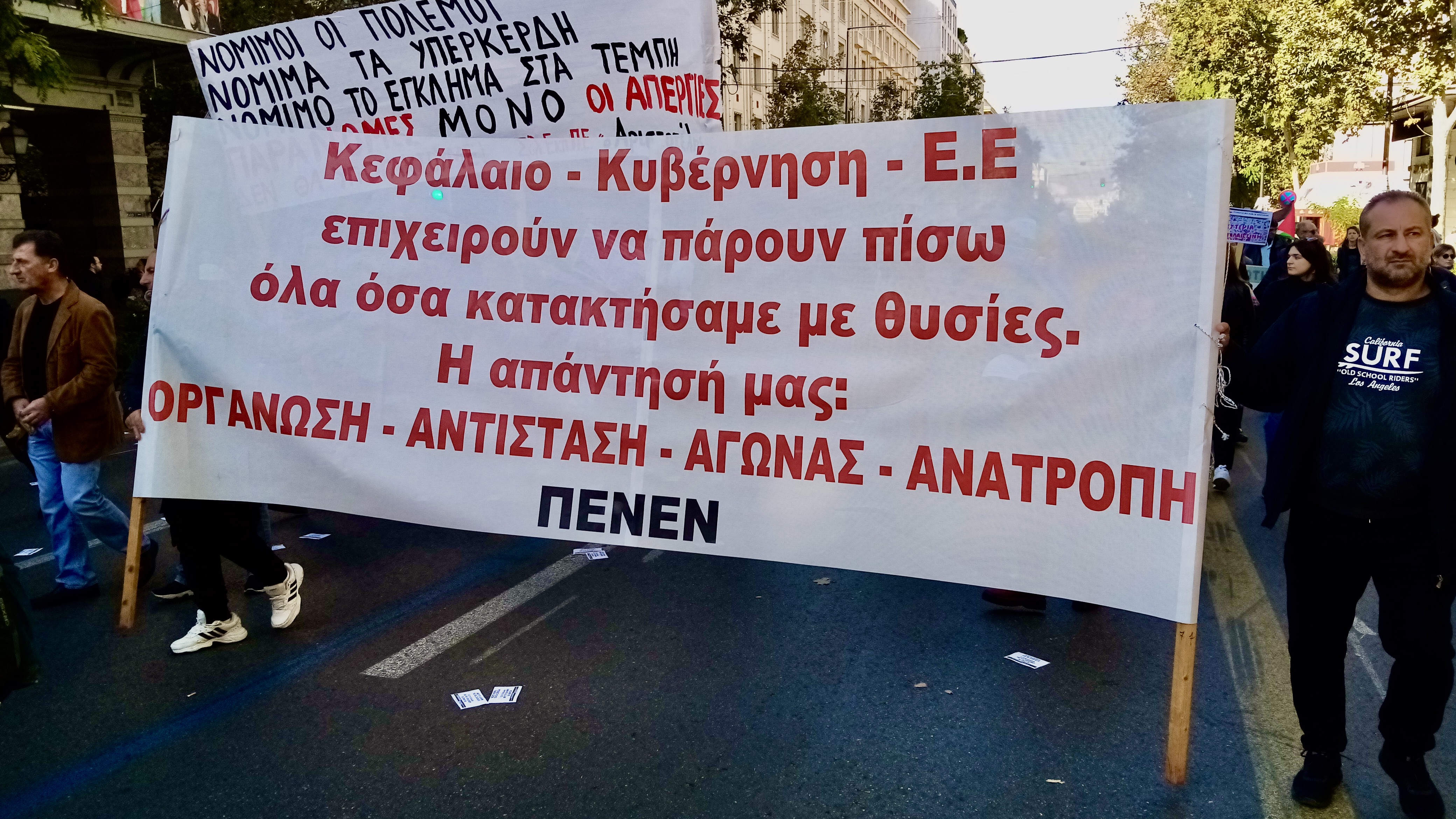Τώρα είναι ώρα τα αγωνιστικά εργατικά σωματεία και οι φοιτητικοί και αγροτικοί σύλλογοι να καλέσουν σε μια Πανεργατική Πανελλαδική Συνέλευση για την οργάνωση και συντονισμό Γενικής Πολιτικής Απεργίας Διαρκείας συντριβής των Μνημονίων με ανατροπή της χούντας Μητσοτάκη. Για κυβέρνηση εργαζομένων εθνικοποιήσεων τραπεζών και μεγάλων επιχειρήσεων και ανατροπής καπιταλισμού. Είναι η μόνη λύση για τη νίκη της εργατικής τάξης και της νεολαίας, για τον τερματισμό των πολέμων. –