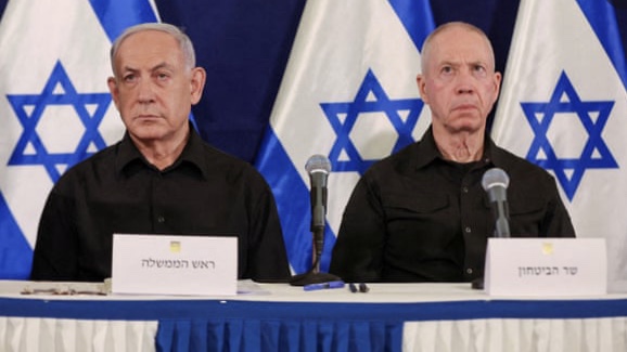 Οι καταζητούμενοι από το Διεθνές Δικαστήριο εγκληματίες πολέμου Μπ. Νετανιάχου και ο πρώην Υπουργός Άμυνας Γ. Γκαλάντ, φίλοι και συνεργάτες Τσίπρα και Μητσοτάκη. (φωτο Abir Sultan)