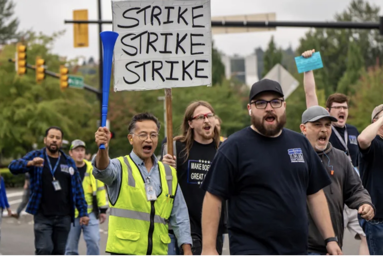 Από τις απεργιακές κινητοποιήσεις εργαζομένων στην εταιρεία Μπόϊνγκ τον περασμένο Σεπτέμβρη που έδειξαν – όπως οι απεργίες λιμενεργατών και αυτοκινητοβιομηχανίας – τη δύναμη της αμερικανικής εργατικής τάξης. Παρά τις υποχωρήσεις της ηγεσίας του σωματείου τους η απεργία κέρδισε 25% αυξήσεις στην περίοδο 2025-2028. (φωτο συνδικάτο IAM)