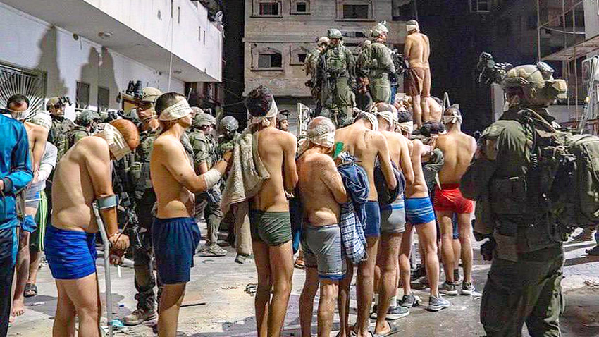 Γιατροί, προσωπικό και ασθενείς του νοσοκομείου Καμάλ Αντουάν στη Γάζα αιχμάλωτοι, μισόγυμνοι και με δεμένα μάτια, μεταφέρονται σε άγνωστη τοποθεσία. (φωτο The News Line 20 Νοέμβρη 2024).