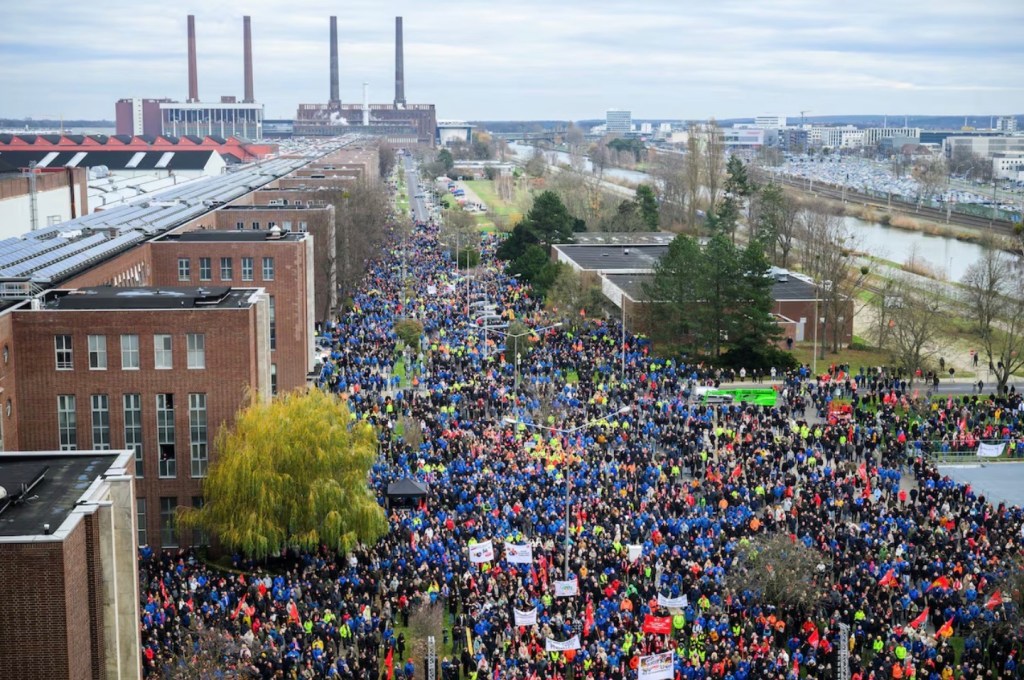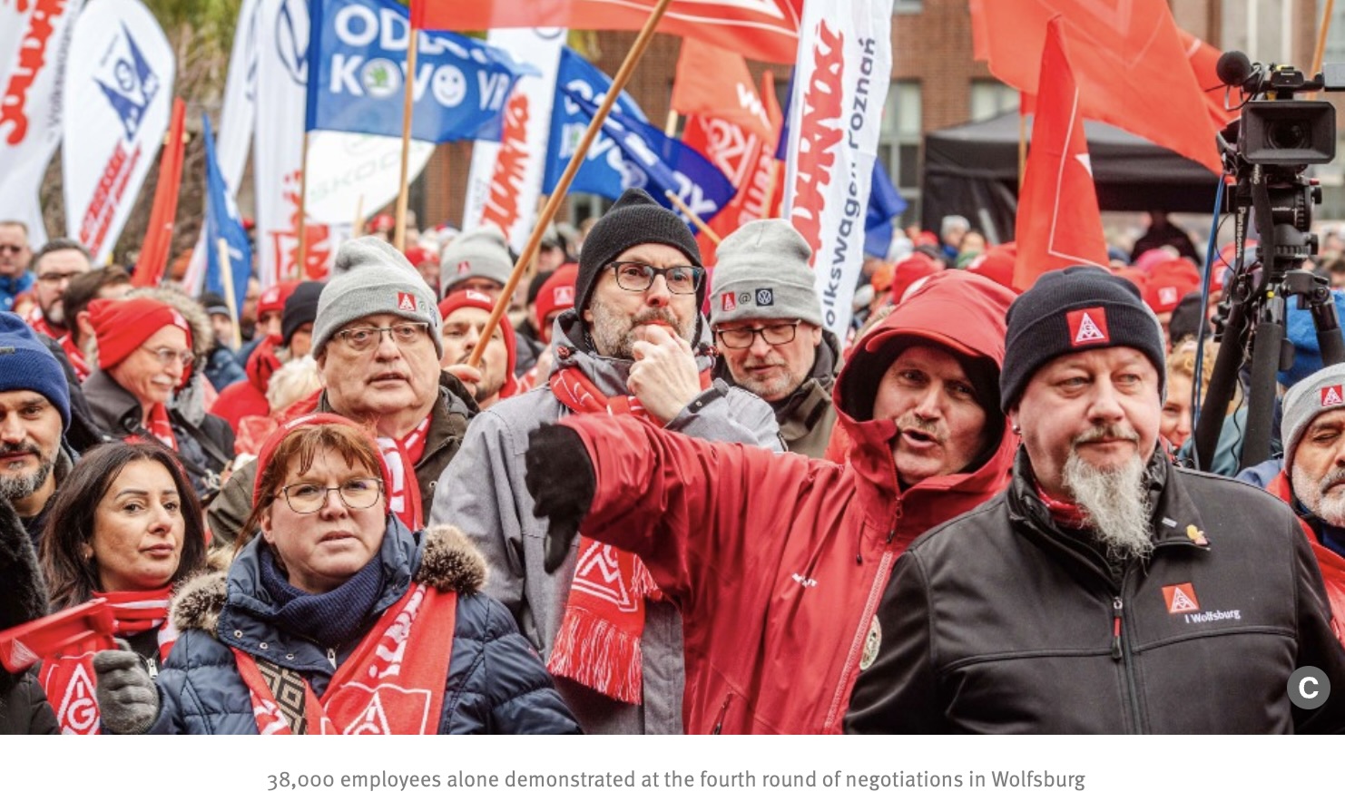 Οι εργαζόμενοι/ες στη Φόλκσβαγκεν πραγματοποίησαν το Δεκέμβρη 3 στάσεις εργασίας με απόλυτη συμμετοχή 100% και δεκάδες χιλιάδες απεργούς σε πορείες στις πόλεις της Γερμανίας.