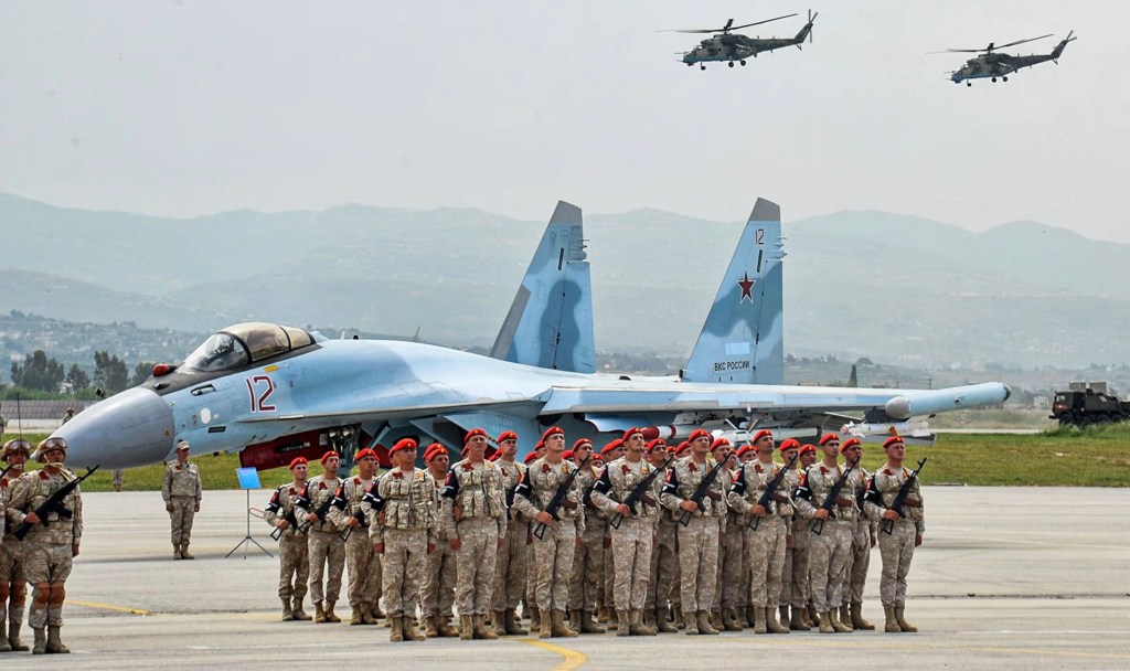 Ρωσικές δυνάμεις στη στρατιωτική βάση στη Συρία. Έπαιξαν μικρό ρόλο ενάντια στην προέλαση των τζιχαντιστώn την περασμένη βδομάδα. (φωτο SANA)