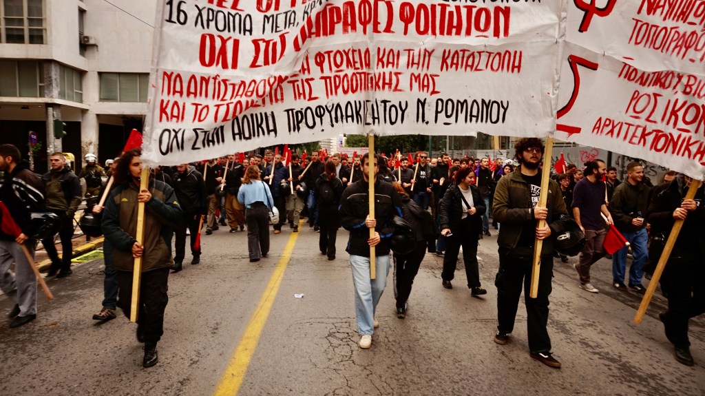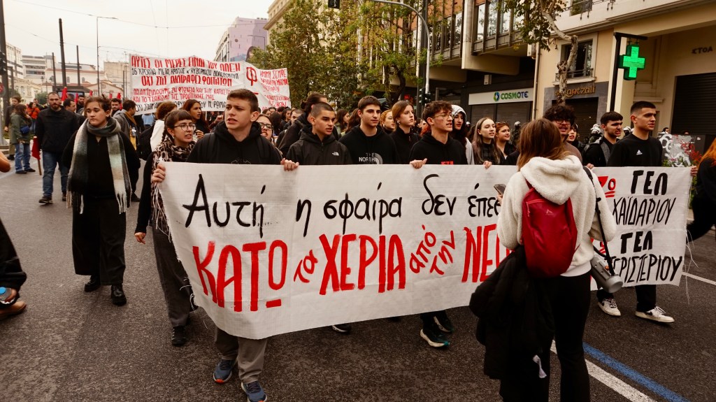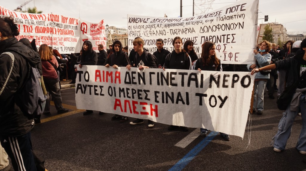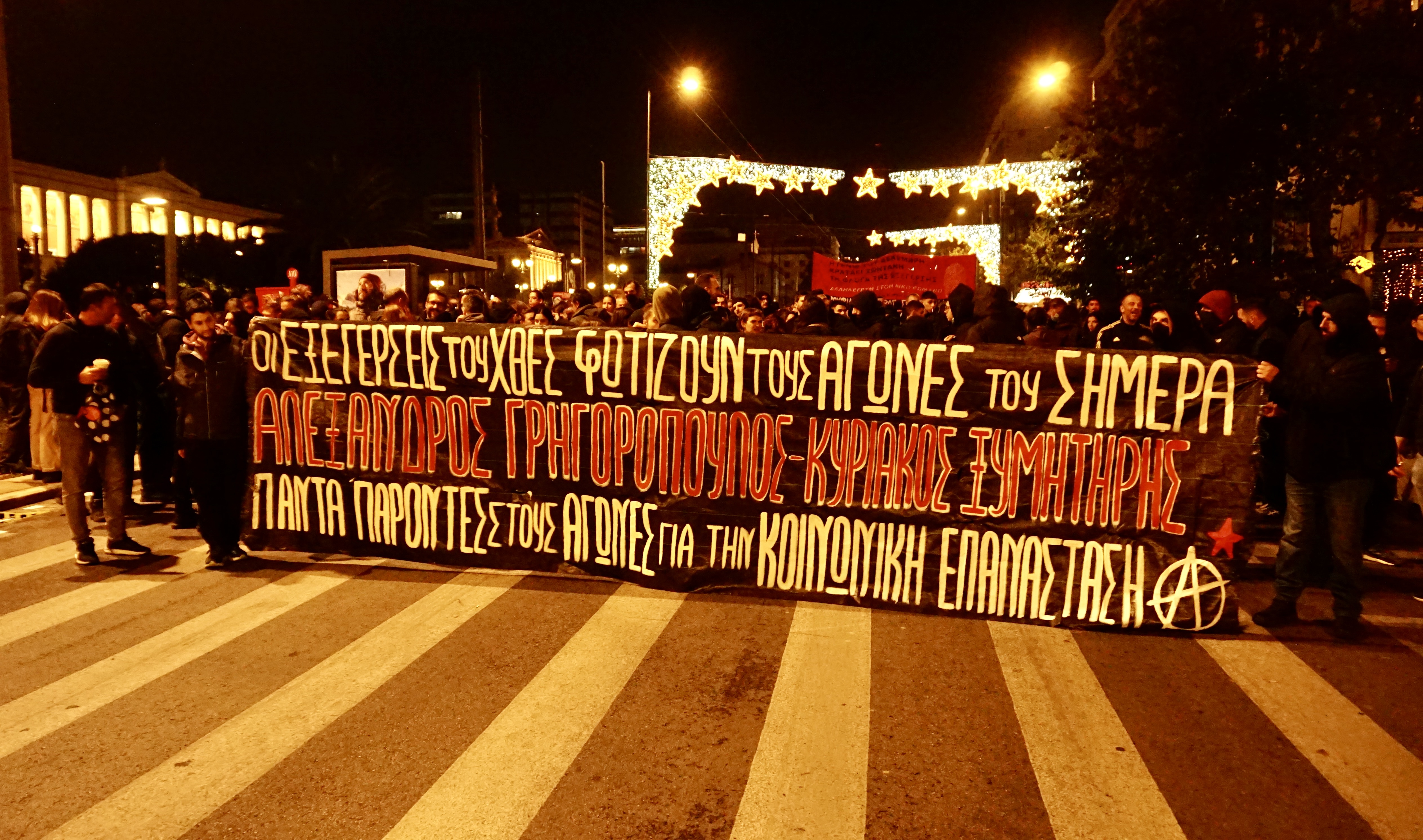 Μαθητές/τριες, φοιτητές/τριες, νεολαία συμμετείχαν στη σημερινή μεσημεριάτικη μαχητική πορεία στο κέντρο της Αθήνας (Προπύλαια, Χαυτεία, Βουλή) στην 16η επέτειο της δολοφονίας από τον “ειδικό αστυνομικό” Ε. Κορκονέα τού 15χρονου μαθητή Αλέξη Γρηγορόπουλου και της Εξέγερσης της Νεολαίας το Δεκέμβρη 2008 – Γενάρη 2009.